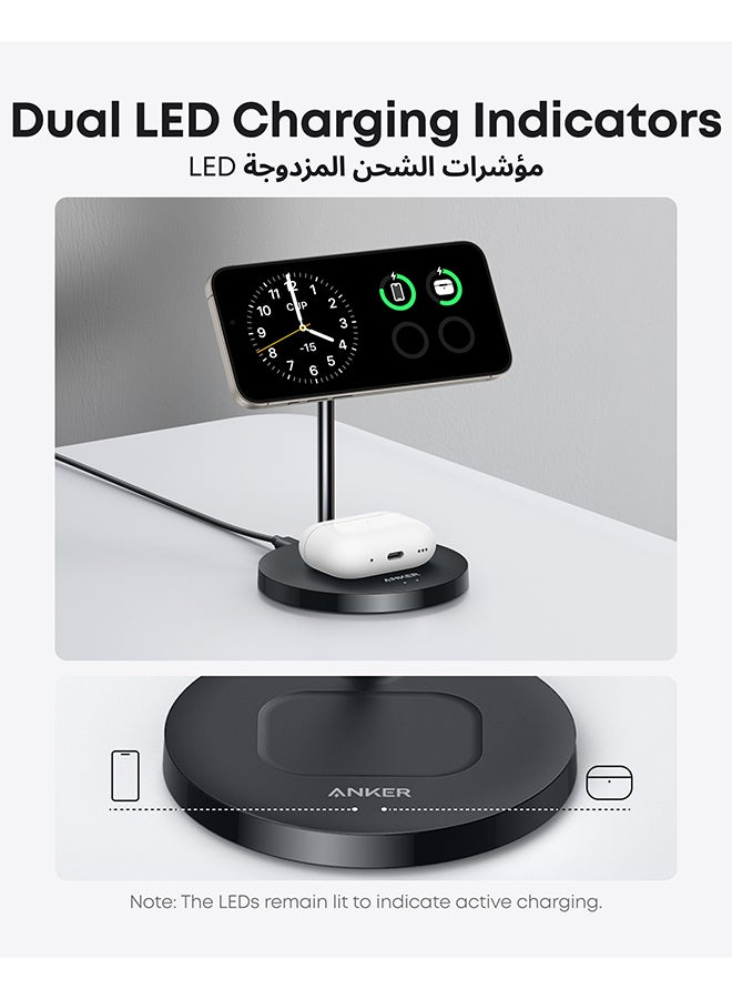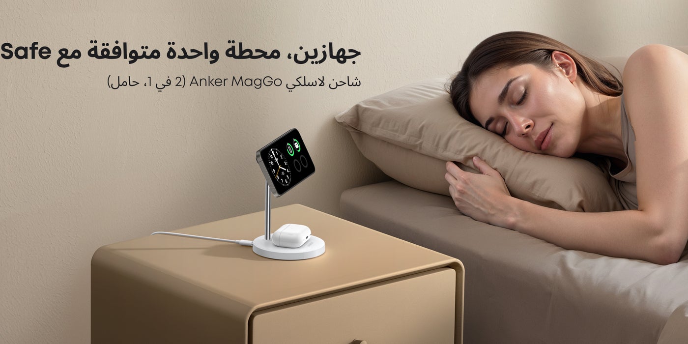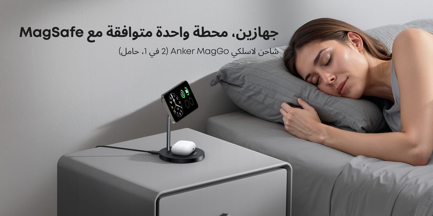 | محتويات العلبة | Anker MagGo Wireless Charger (2-in-1 Stand), 5 ft / 1.5 m USB-C to USB-C cable, welcome guide, 24-month warranty, and our friendly customer service. |
