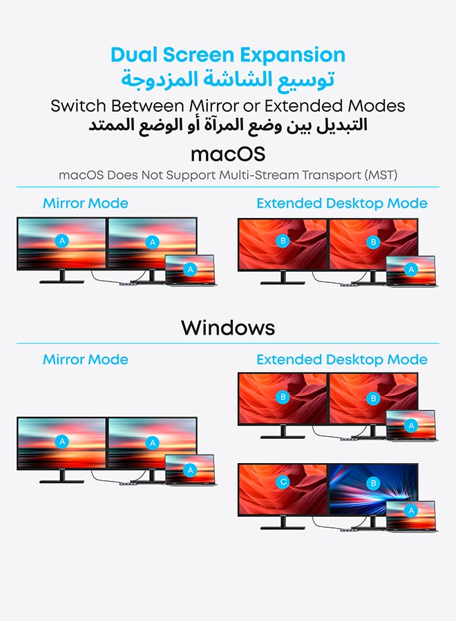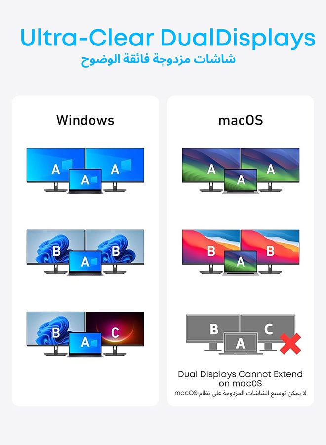 | الطقم يتضمن | What You Get: Anker USB-C Hub (7-in-1, Dual Display), welcome guide, 24-month warranty, and our friendly customer service. |