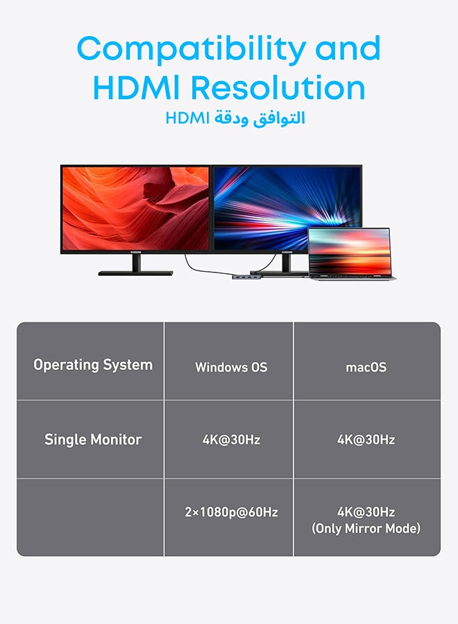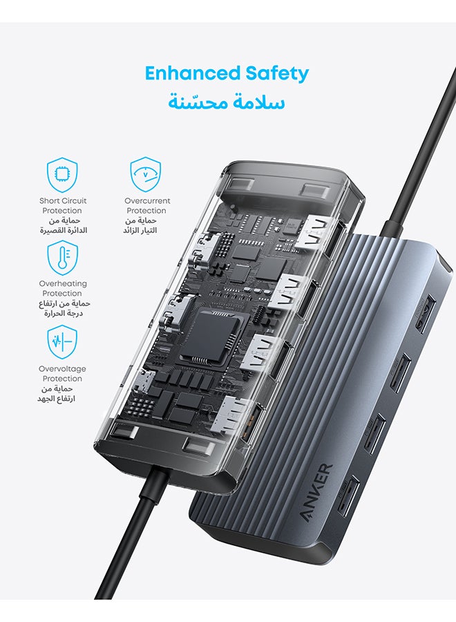 | محتويات العلبة | What You Get: Anker USB-C Hub (7-in-1, Dual Display), welcome guide, 24-month warranty, and our friendly customer service. |