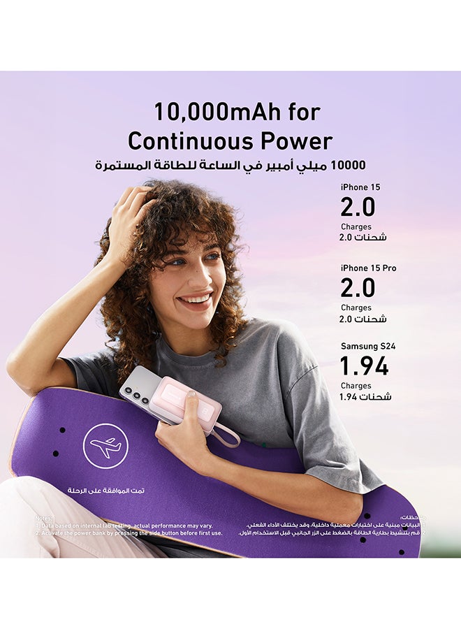 Mighty Compact Power: This compact and powerful 10,000mAh power bank provides up to 2 full charges for an iPhone 15 and 1.94 charges for a Samsung S24, making it ideal for travel.