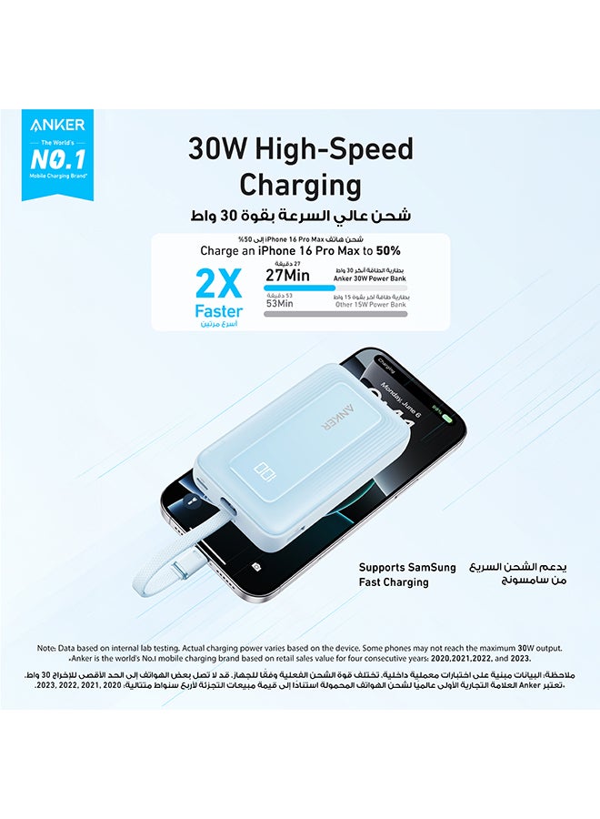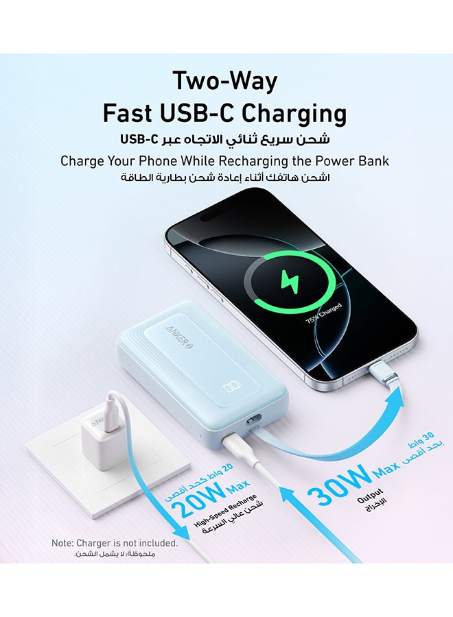 30W Bi-Directional Charging: With two-way fast USB-C charging, enjoy up to 30W output and 20W input, ensuring your gadgets are quickly powered.