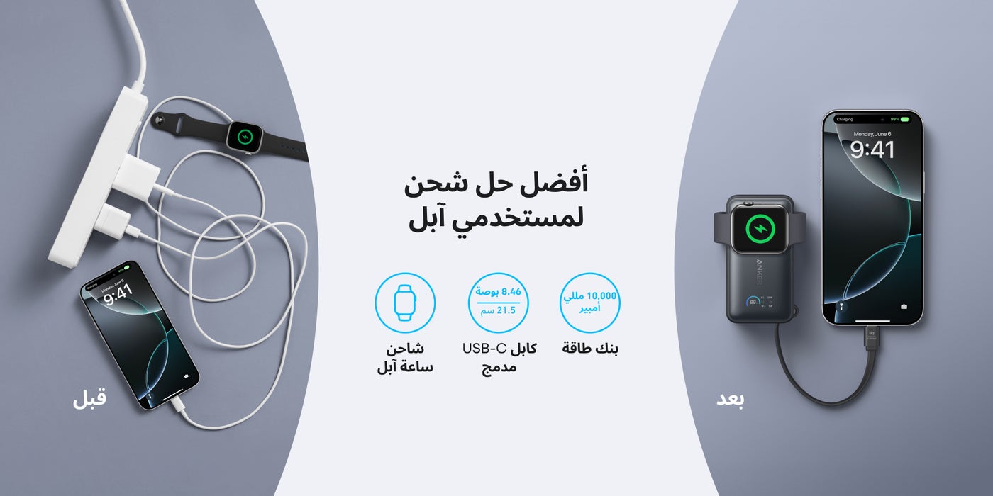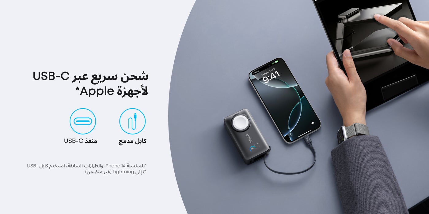 بنك طاقة MagGo لساعات آبل، معتمد رسميًا بسعة 10,000 مللي أمبير، شاحن محمول مدمج مع كابل USB-C، حزمة بطارية بحد أقصى 35 واط، لجهاز iPhone 17/16، iPad، AirPods، والمزيد