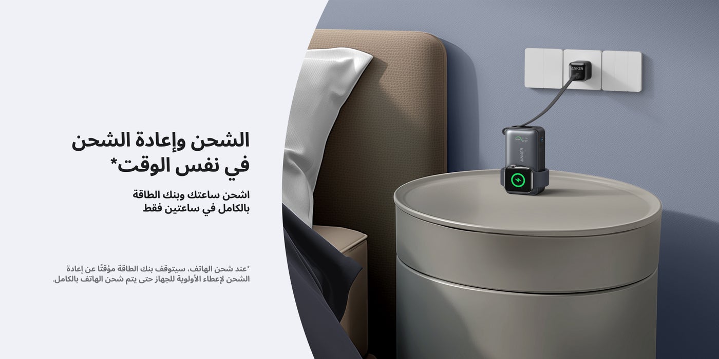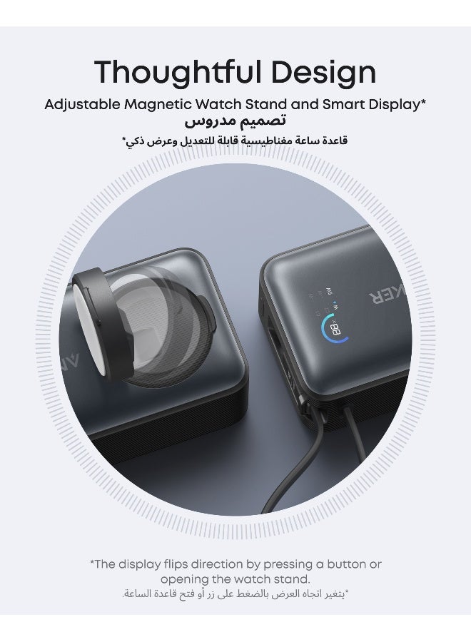 30W USB-C and 5W Apple Watch Charging: Supports simultaneous device charging with the built-in cable or port, offering up to 30W, alongside a wireless watch charger that provides up to 5W. The power bank fully recharges in 1.5 hours with a 30W maximum input.
