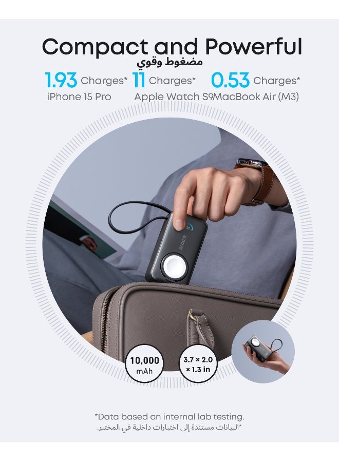 All-Around Apple Charging: Seamlessly charge your tech with a robust 10,000mAh power bank, featuring an adjustable Apple Watch charger and a built-in USB-C cable for quick, on-the-go power.