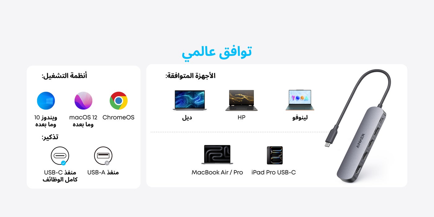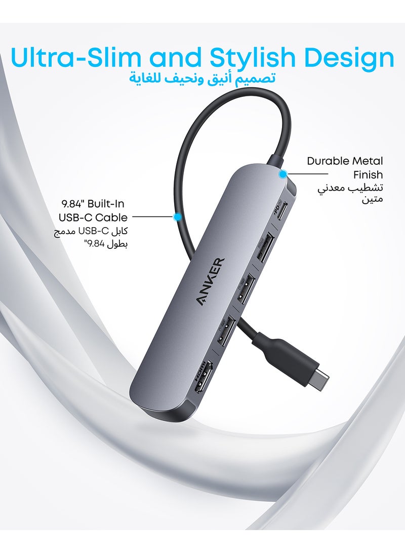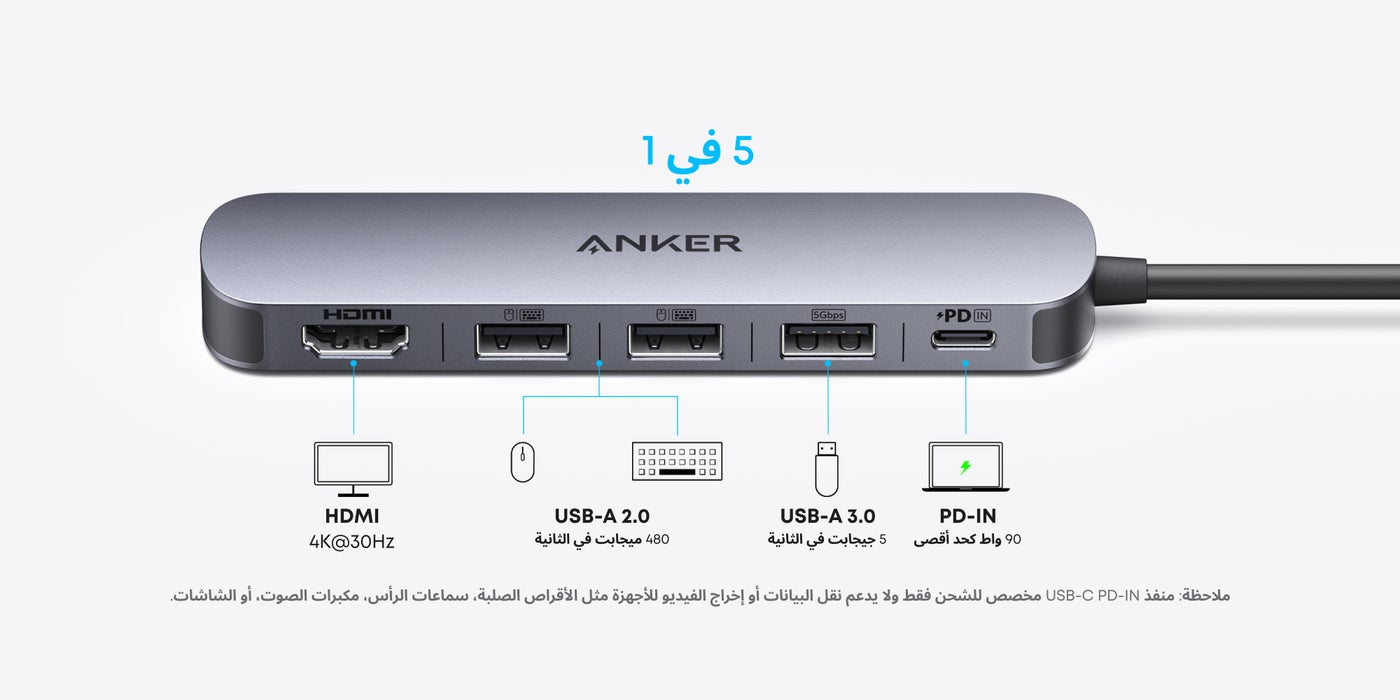 محور USB-C (5 في 1)، HDMI بدقة 4K@30Hz مع قدرة شحن قصوى 100 واط، منافذ بيانات USB-C و USB-A، مدمج وأنيق لجهاز MacBook و Dell XPS والمزيد (الشاحن غير متضمن)