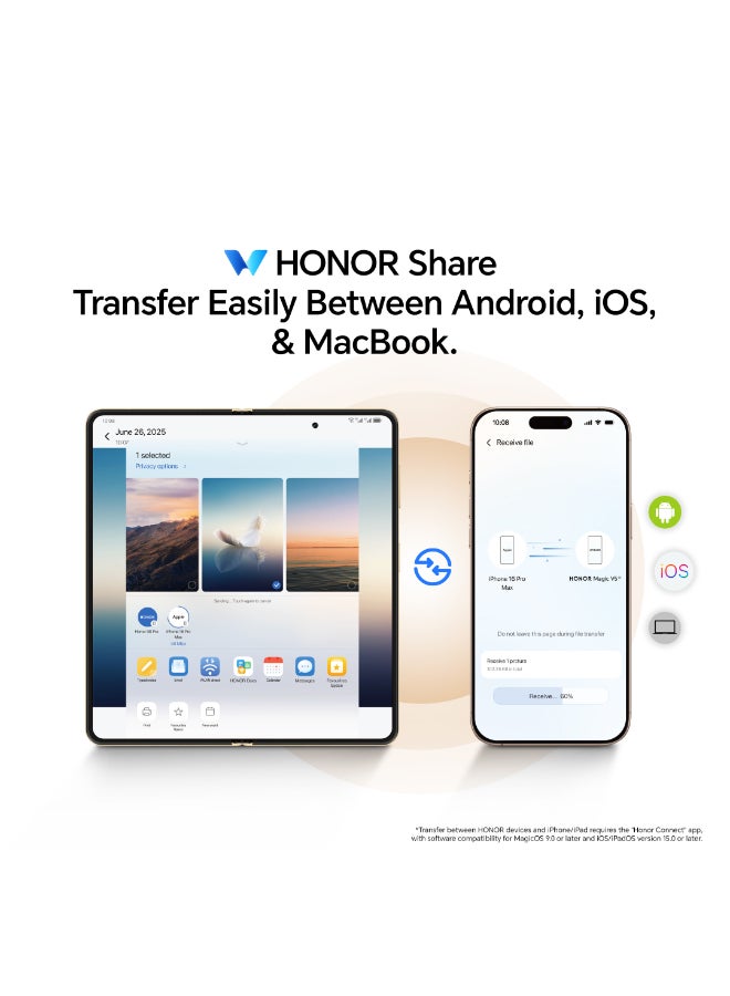 اختبر مستقبل الابتكار المحمول مع HONOR Magic V5 — جهاز فائق النحافة وقابل للطي مصمم لأولئك الذين يطالبون بالتميز. مصنوع من مواد متطورة ومغلف بتصميم أنيق، يفتح ماجيك V5 ليكشف عن شاشة OLED مذهلة بحجم 7.95 بوصة مثالية للعمل واللعب والترفيه الغامر.