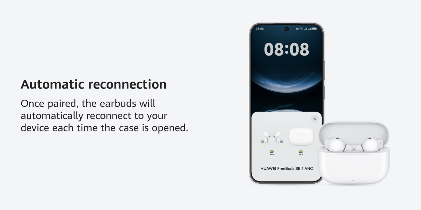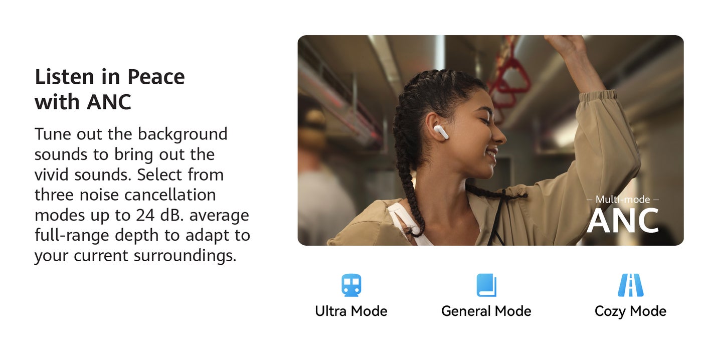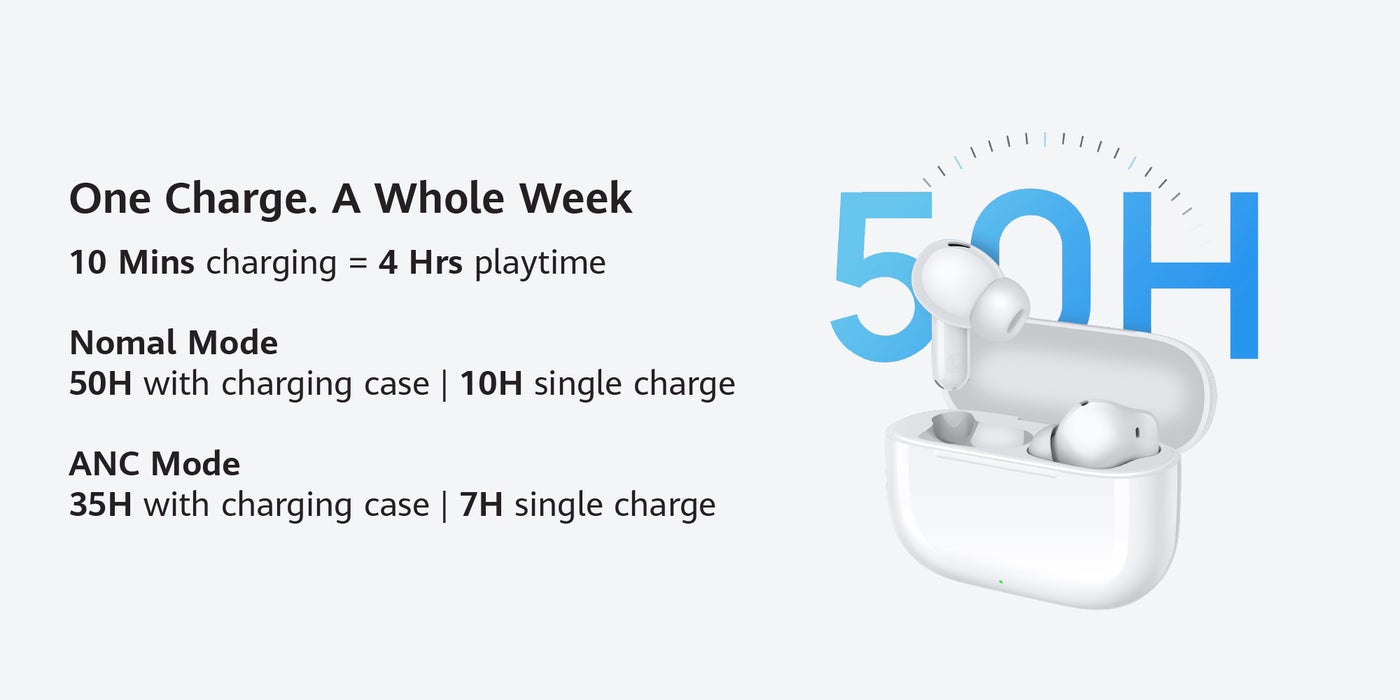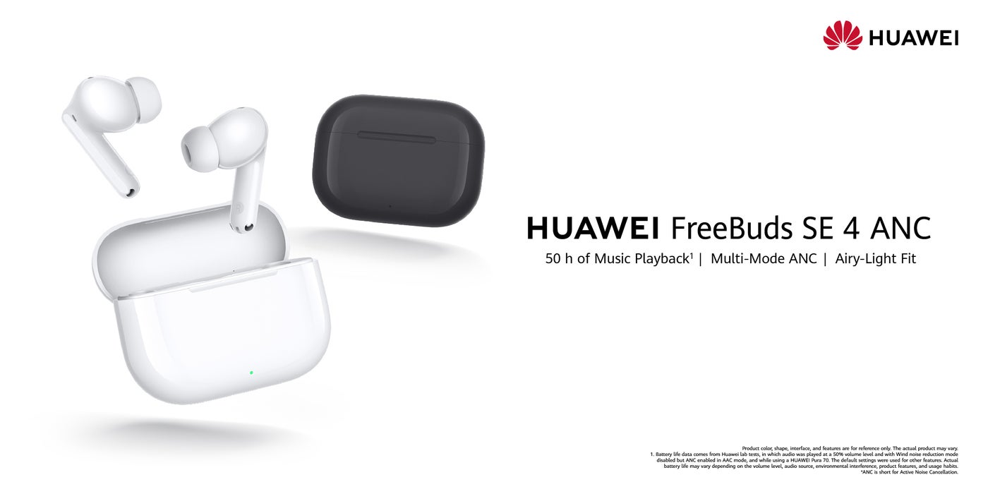 HUAWEI FreeBuds SE 4 ANC: سماعات أذن لاسلكية متميزة للانغماس اليومي. استمتع بسماعات رأس بإلغاء الضوضاء الحقيقية بسعر مناسب. يقوم نظام إلغاء الضوضاء الهجين التكيفي لدينا بالتبديل بذكاء بين 3 أوضاع (فائق/عام/خفيف)، مما يتيح لك إلغاء الضوضاء المحيطة حتى 24 ديسيبل. مثالية للرحلات الجوية، والتنقل، أو المكاتب المزدحمة. استمتع بـ 50 ساعة من وقت التشغيل الكلي. مع شحن سريع لمدة 10 دقائق يوفر 4 ساعات من الموسيقى، تصبح قلق البطارية شيئًا من الماضي. لقد اجتازت HUAWEI FreeBuds SE 4 ANC 26 اختبارًا صارمًا لضمان أنها مصممة لتحمل كل ما تقدمه لك الحياة.