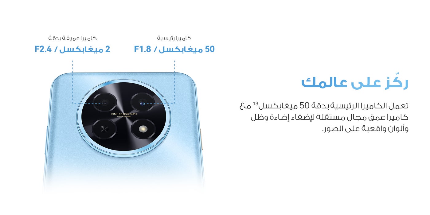 | الكاميرا الأساسية (MP) | 50MP+2MP |