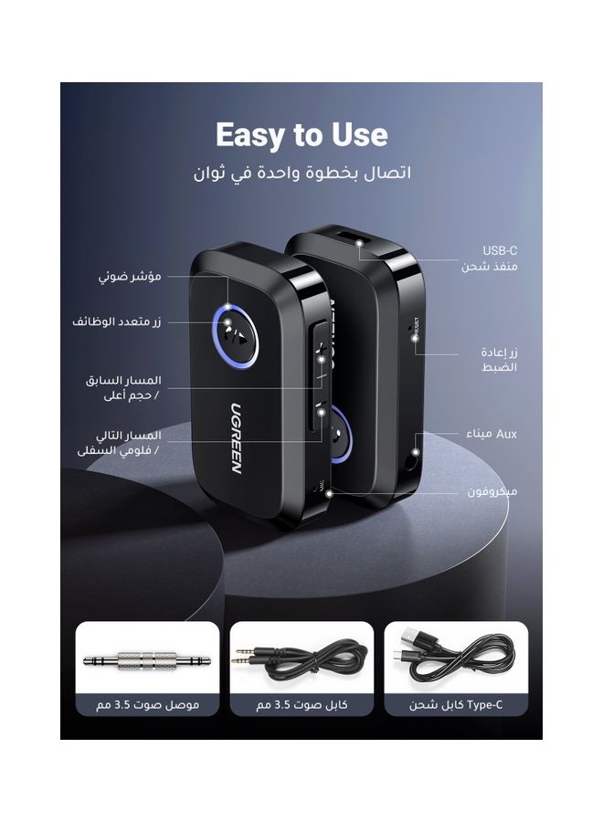 【Latest Bluetooth 5.3】Enjoy clearer calls in the car and higher-quality music with UGREEN Aux to Bluetooth 5.3 Receiver.