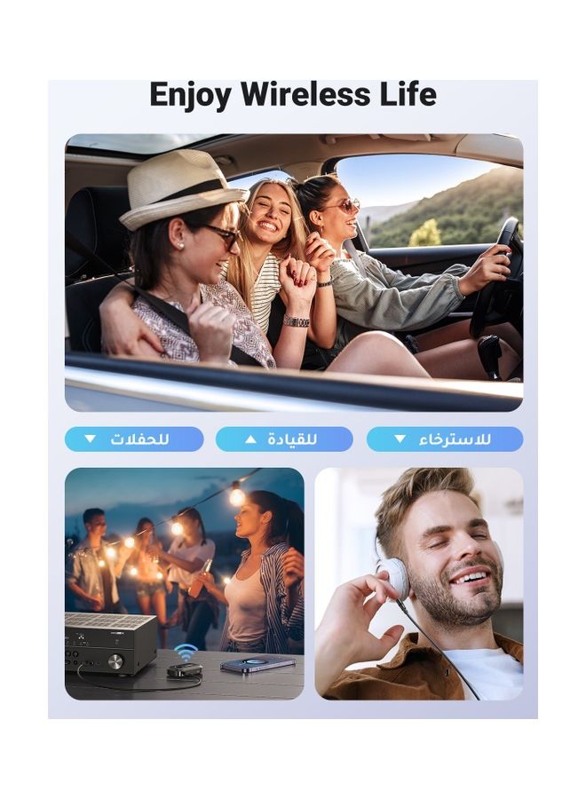 【Dual Device Connection Supported】UGREEN Bluetooth 5.3 Receiver support connects 2 devices simultaneously. You can easily switch devices for calls and music while driving, and change music with your friends at parties.