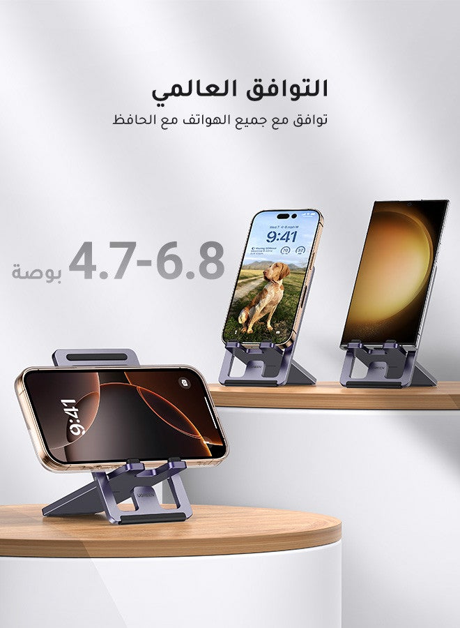 حامل موبايل محمول قابل للتعديل للمكتب، حامل زاوية رؤية قابل للطي، معدني ثابت من خليط معدني، متوافق مع ايفون17 16 15 وسامسونج اس24/25 وجميع الهواتف الذكية