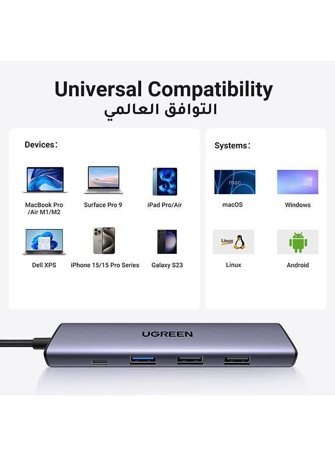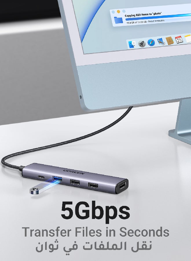 【محور USB C ب 5 في 1 】 4K منفذ HDMI ، منفذ شحن PD 100 وات، 2* منافذ USB 2.0 ،منفذ USB 3.0. يمكن لجميع المنافذ أن تعمل بشكل جيد في وقت واحد!