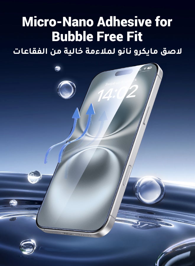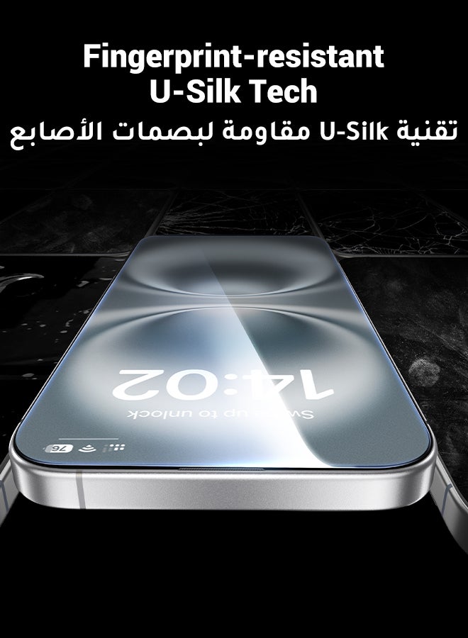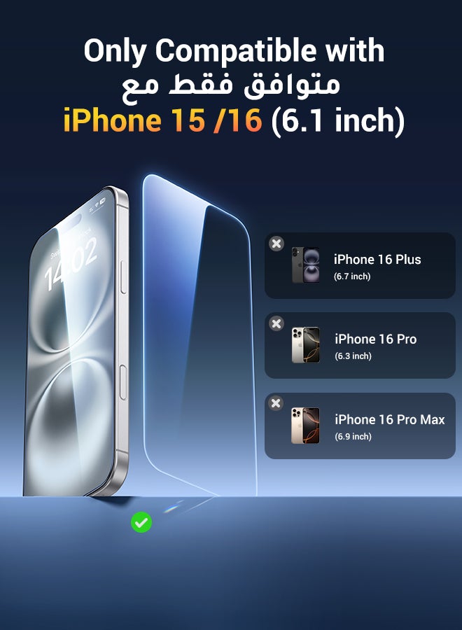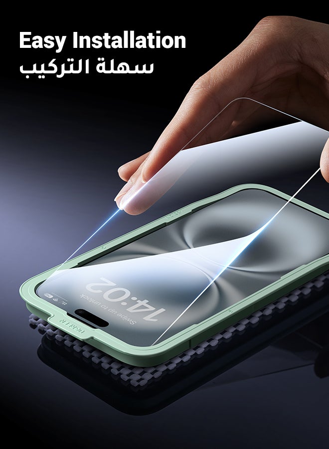 قطعتان من واقي الشاشة عالي الدقة لهاتف آيفون 16 15 مقاس 6.1 بوصة شفاف, إطار سهل التركيب, حماية عسكرية, مقاوم للخدش ومضاد لبصمات الأصابع وخالٍ من الفقاعات وطبقة زجاجية مقواة 9H لهاتف آيفون 16 15 شفاف