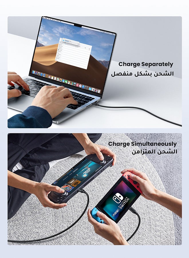 【كابل شحن سريع 100 واط PD3.0】تقنية يوجرين 100 واط PD تأخذ سرعة الشحن إلى المستوى التالي. يدعم كابل الشحن السريع من النوع C الشحن السريع PD3.0 وQC4.0 وSCP مع مخرج 100 واط (20 فولت 5 أمبير) بحد أقصى.