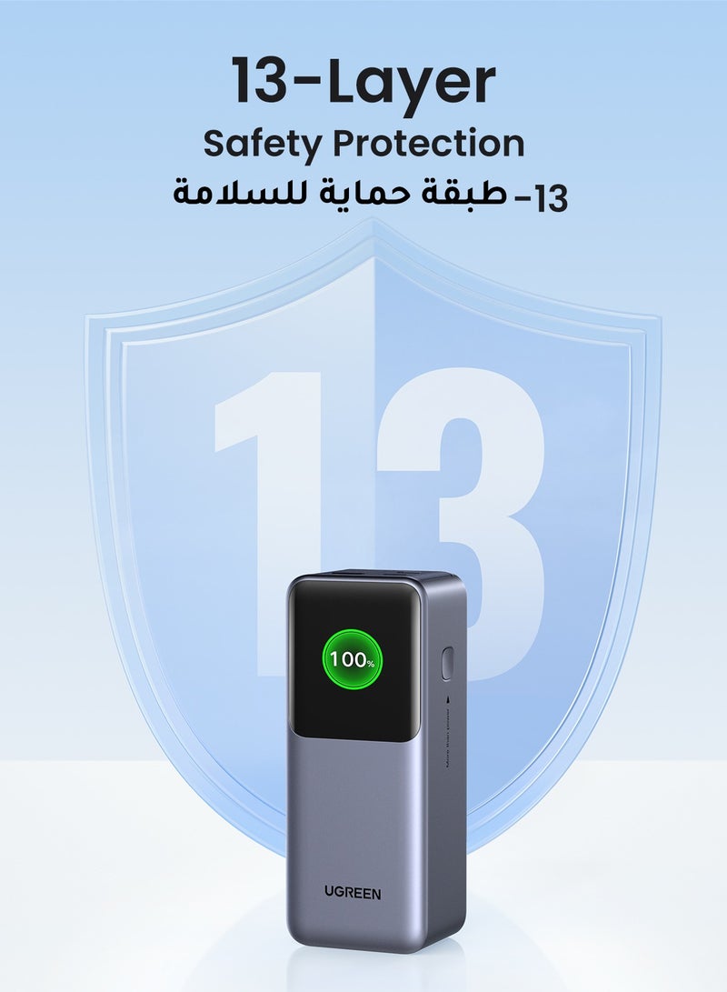 | محتويات العلبة | 130W 20000mAh PD3.1 power bank*1, 240W USB-C to USB-C cable*1, User manual*1, 1*Storage bag |