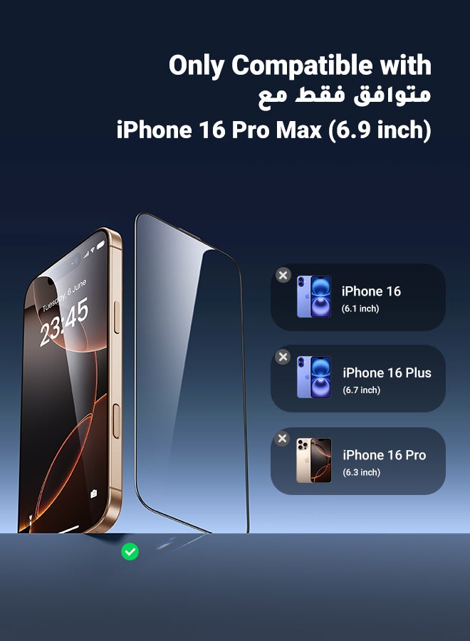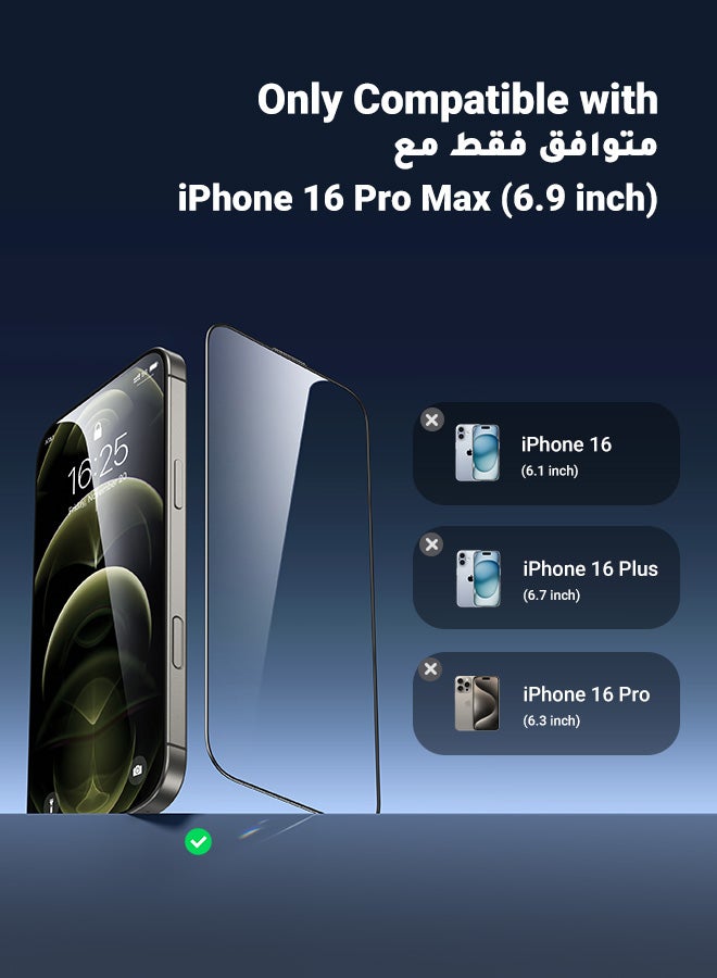 قطعتان من واقي شاشة آيفون 16 بروماكس مع مجموعة محاذاة تلقائية، إطار شفاف عالي الدقة سهل التركيب بدون استخدام اليدين، حماية من الدرجة العسكرية، مقاوم للخدش، مضاد لبصمات الأصابع، خالٍ من الفقاعات