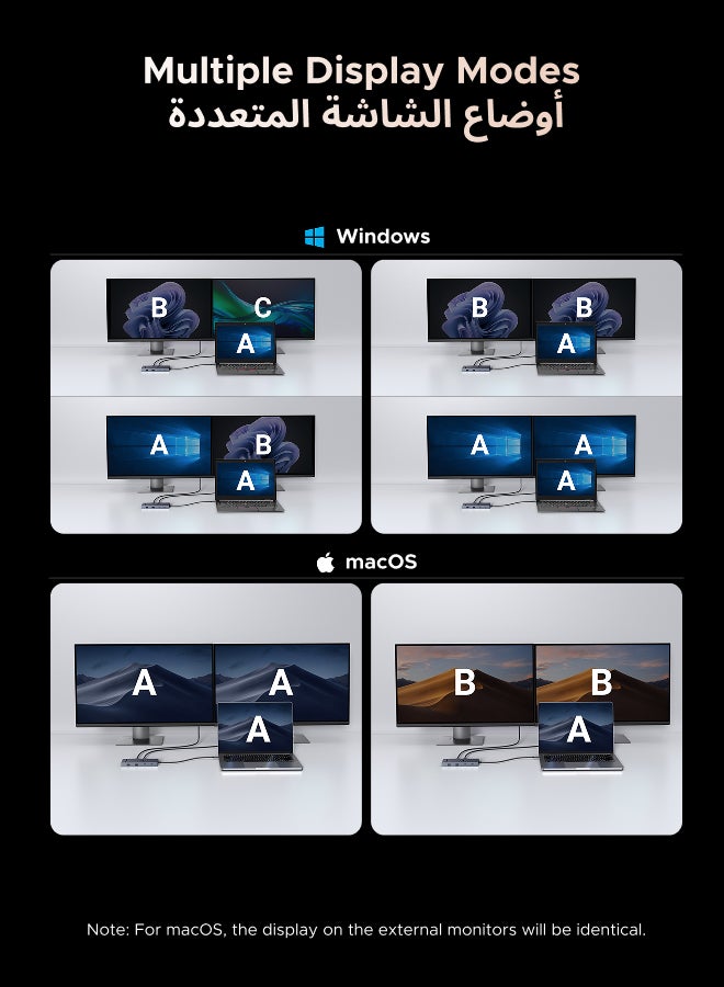 【منفذا HDMI مزدوجان بدقة 4K بتردد 60 هرتز】يدعم موزع USB-C توصيل شاشتين بدقة تصل إلى 4K بتردد 60 هرتز في نفس الوقت. كما يمكن استخدامه لتمديد الشاشة أو عرض شاشتين.