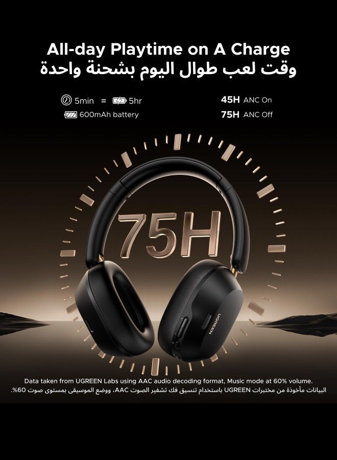 Designed for long-lasting use, the UGREEN Bluetooth Headphones offer an impressive 45-hour battery life on a single charge. Need a quick boost? Just 5 minutes of charging provides 5 hours of playtime, ensuring you're never without your music or games. The lightweight and ergonomic design, combined with an adjustable headband and soft ear cushions, provide all-day comfort, making these headphones ideal for extended use.