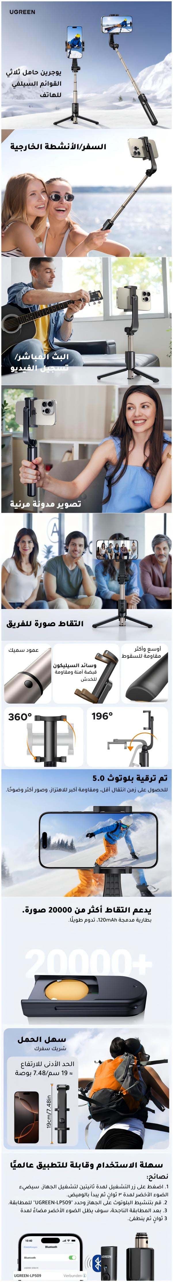 【ما تحصل عليه】1 *يوجرين عصا سيلفي، 1 * دليل المستخدم، ضمان لمدة 24 شهرًا، خدمة عملاء على مدار 24 ساعة، دعم فني مدى الحياة.