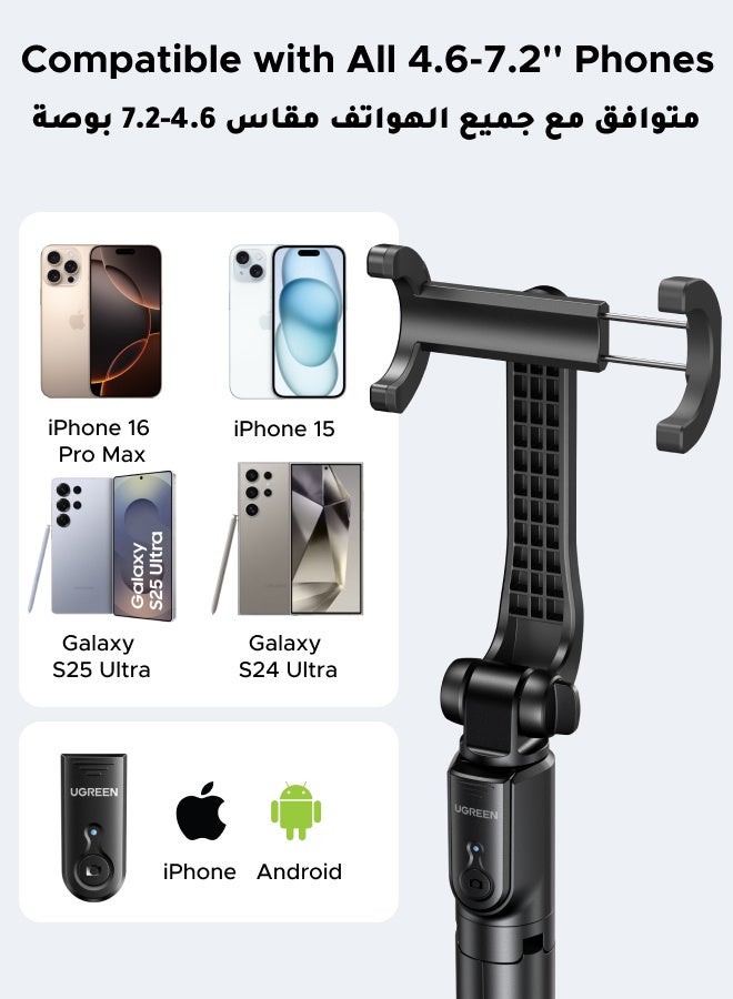 【سهل الحمل، صغير الحجم】أطول بقليل من آيفون 16 برو ماكس! نظرًا للوزن الثقيل الذي قد يسببه استخدام عصا السيلفي، حطمت يوجرين قيود الحجم وأطلقت حامل السيلفي المحمول هذا بطول 19 سم فقط ووزن 164 غرام.
