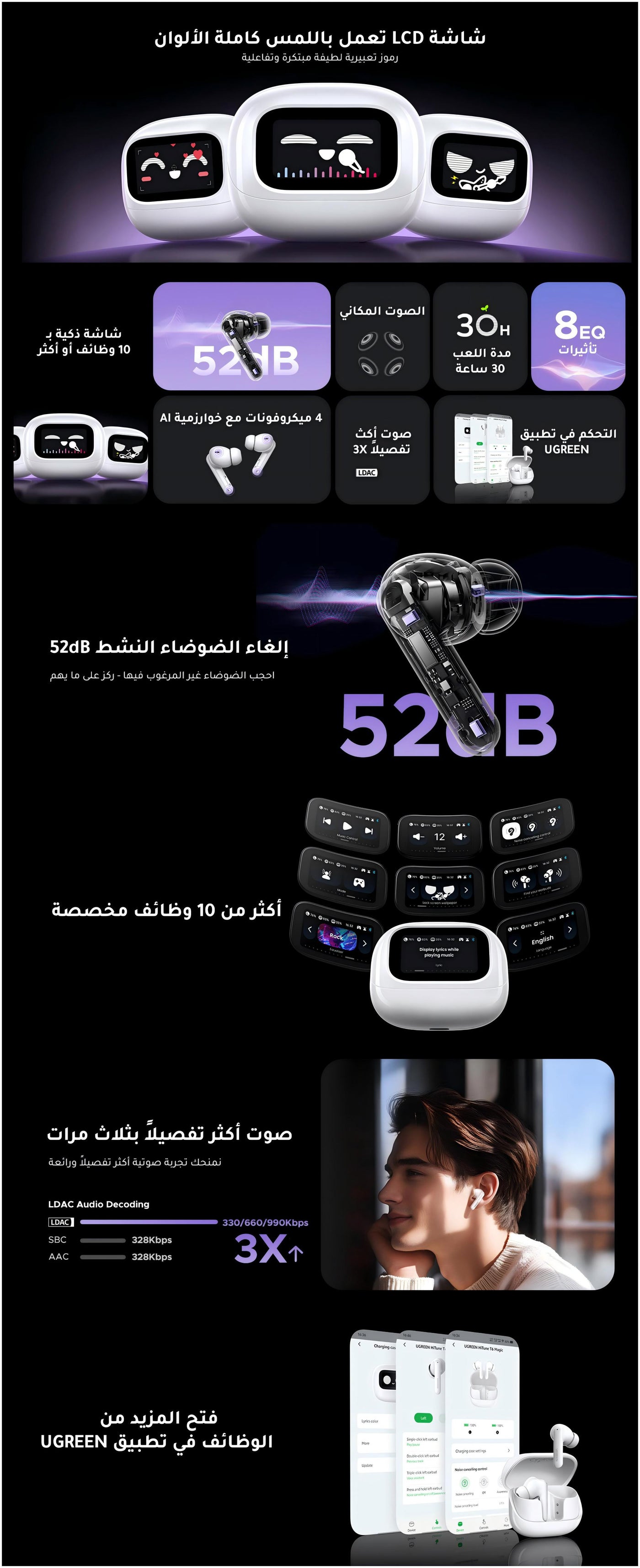 | محتويات العلبة | 1 * UGREEN EchoBuds Magic, 1 * user manual, 24-month warranty, 24-hour customer service, lifetime technical support. |
