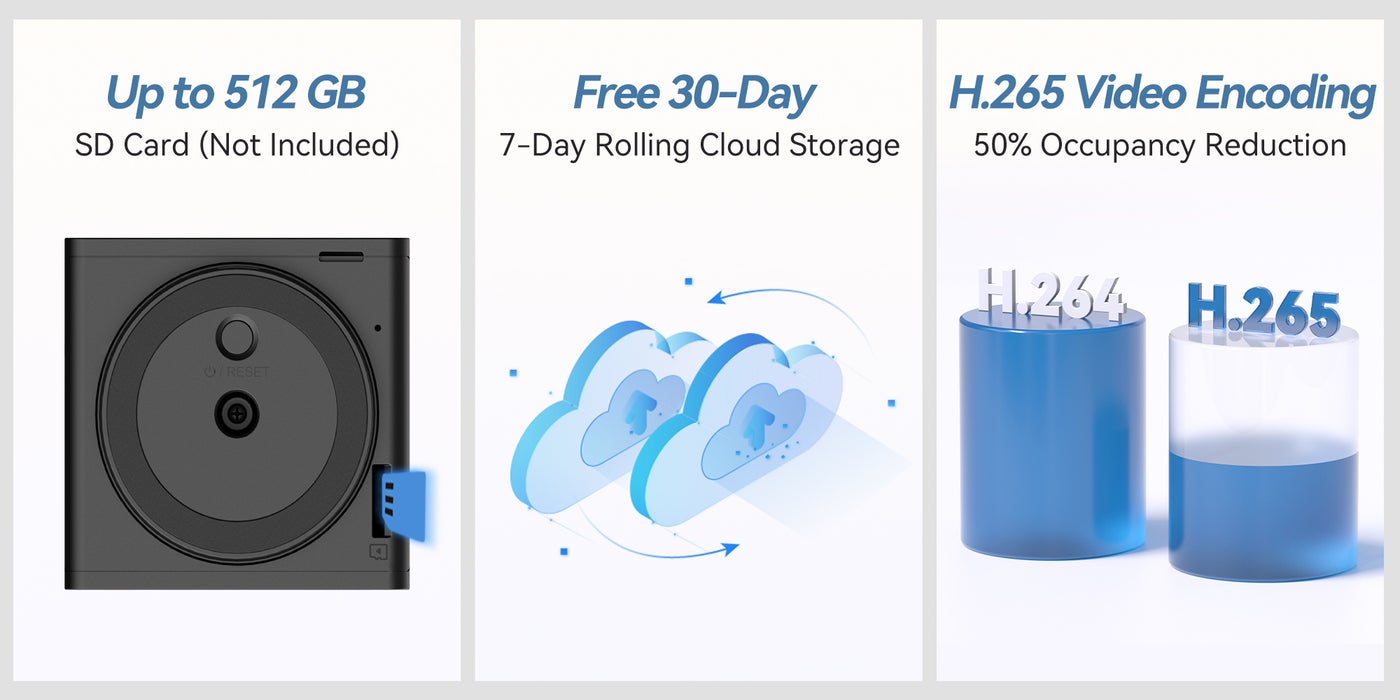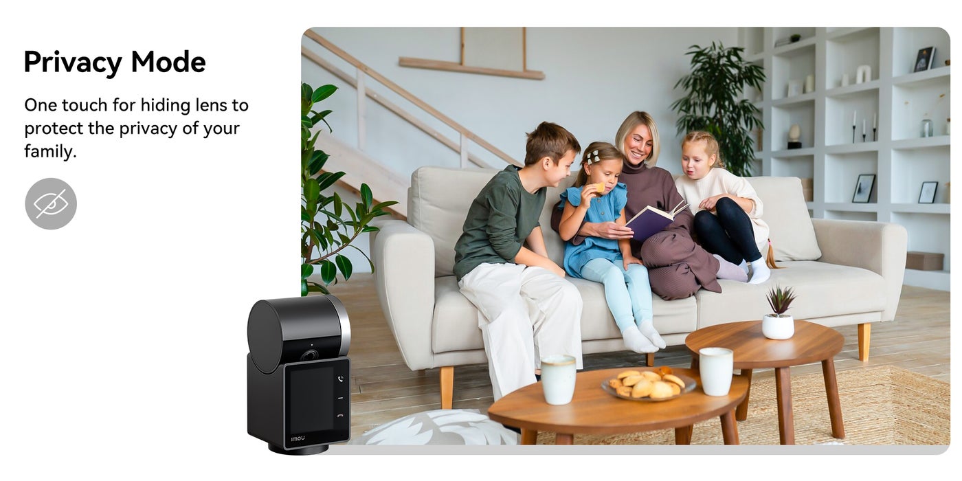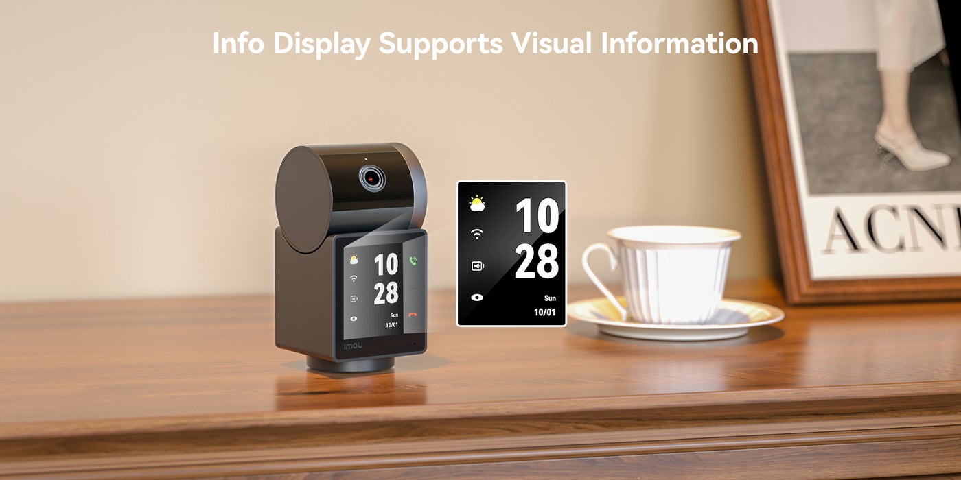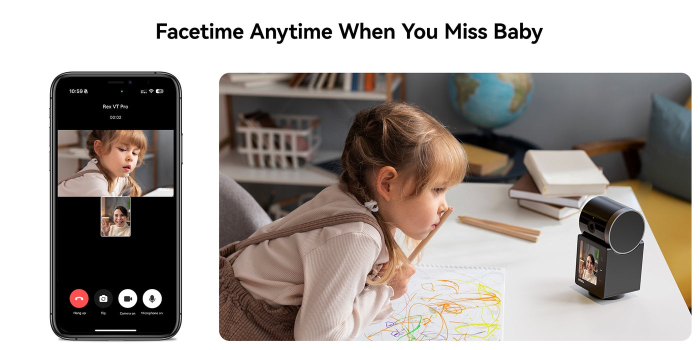 With 5MP/3K live monitoring and panoramic 0-355°pan & 0-90°tilt feature, Rex VT ensures every corner of your home completely covered. It supports two-way video talks with a 2.4-inch screen. Two buttons on the side of the screen allow you to make the video call and hang up.Human/Pet detection quickly finds events in images and immediately sends a notification to you. With built-in siren, Rex VT actively keeps unwelcome visitors away from what you care about. Privacy Mode helps protect your personal privacy when you are home, and Smart Tracking function lets the camera follows moving objects when it detects motion.