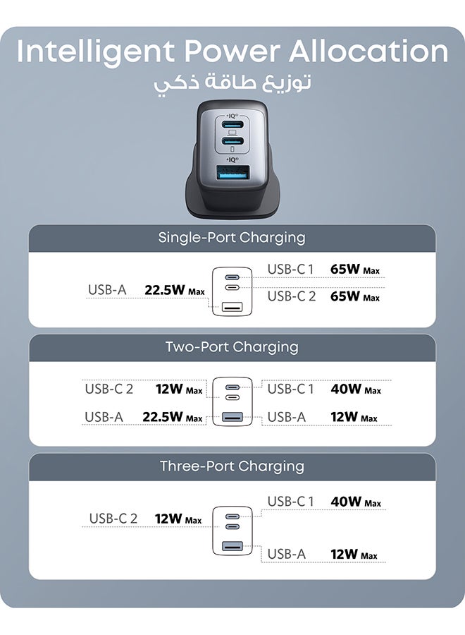 | What's In The Box | Anker 735 Charger (Nano II 65W) / PowerPort III 3-Port 65W Pod, welcome guide |
