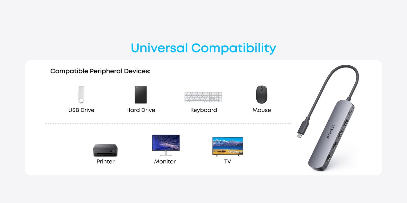 What You Get: Anker USB-C Hub (5-in-1, 4K HDMI), welcome guide, 12-month warranty, and our friendly customer service.