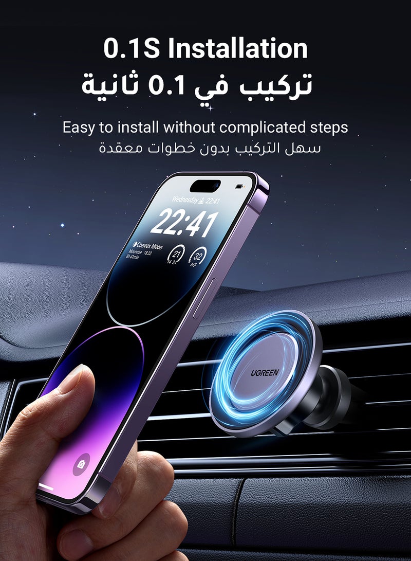 【One-hand Operation】: UGREEN car holder for vent enables to put down or pick up your phone by one hand easily, clip it on the vent so your phone will not block your vision, auto lock and hold your phone firmly, free your hand for safe driving.