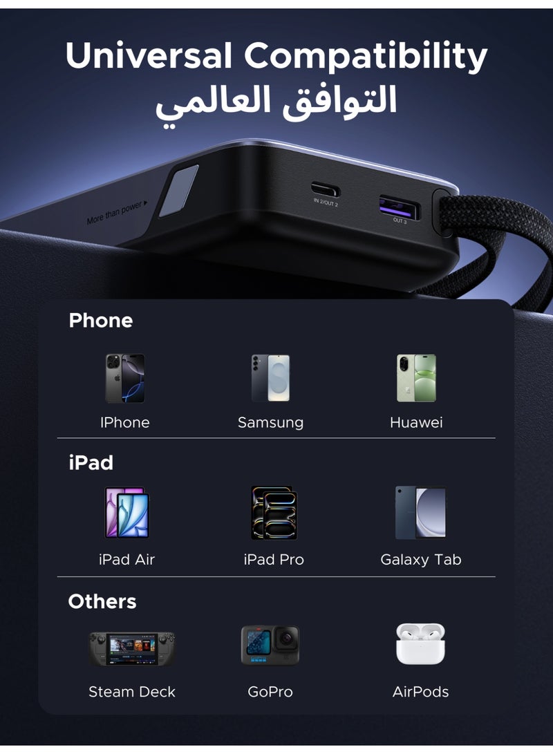 Smart Digital Display: The clear LED digital display shows the exact remaining battery percentage. Never guess your power level again. Plan your charging schedule with confidence, whether you're at the office, home, or on an adventure.