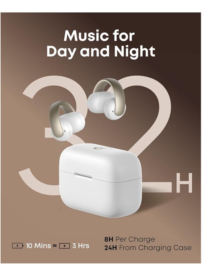 Flexible, Secure Fit: soundcore AeroClip clip-on earbuds boast an adaptive open-ring design that endures 20,000 bends. Feather-light and flexible, they stay secure for all-day wear.