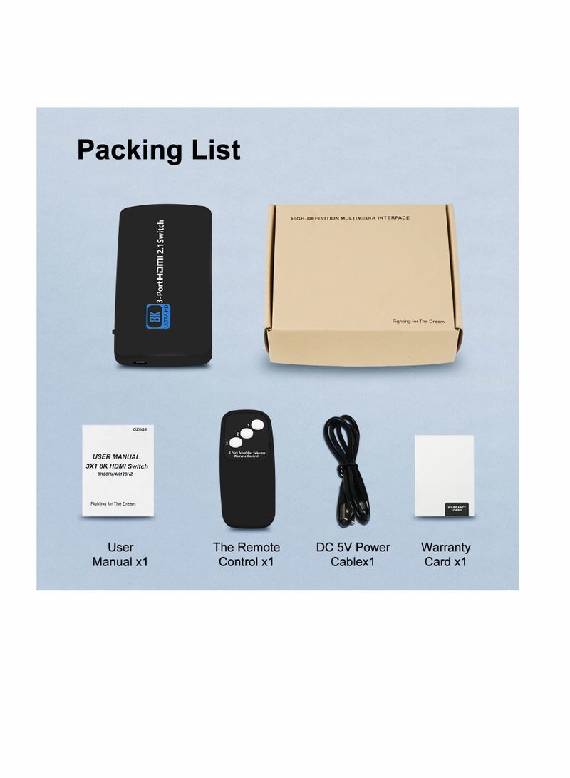 Please Note: If you want to output 8K signal, it is recommended to use 8K standard cable. To ensure the transmission of 8k signals, HDMI cables should not exceed 3 meters.