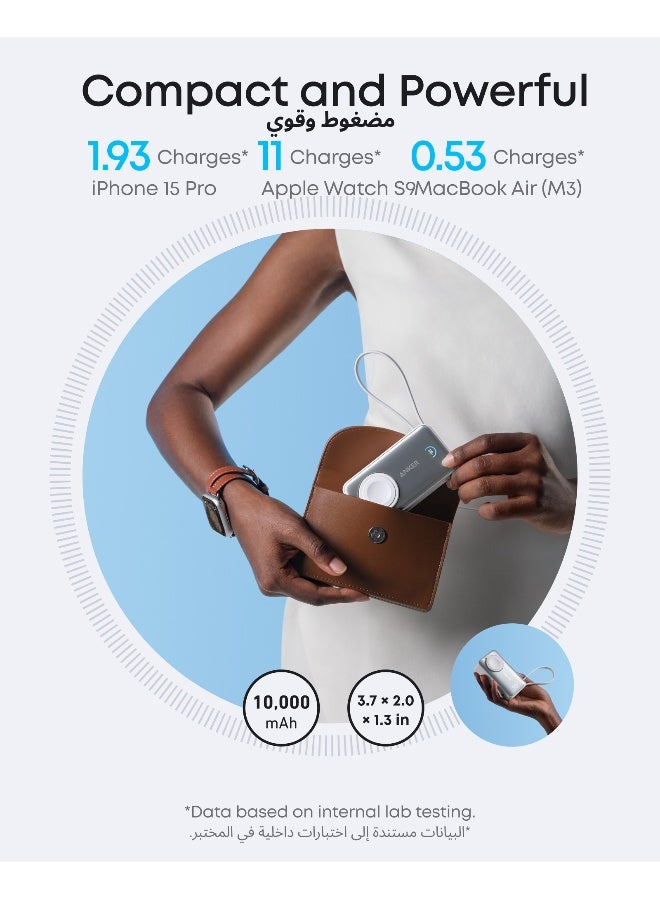 بنك طاقة MagGo لساعات آبل، معتمد رسميًا بسعة 10,000 مللي أمبير، شاحن محمول مدمج مع كابل USB-C، سعة بطارية قصوى 35 واط، لجهاز iPhone 17/16، iPad، AirPods، والمزيد