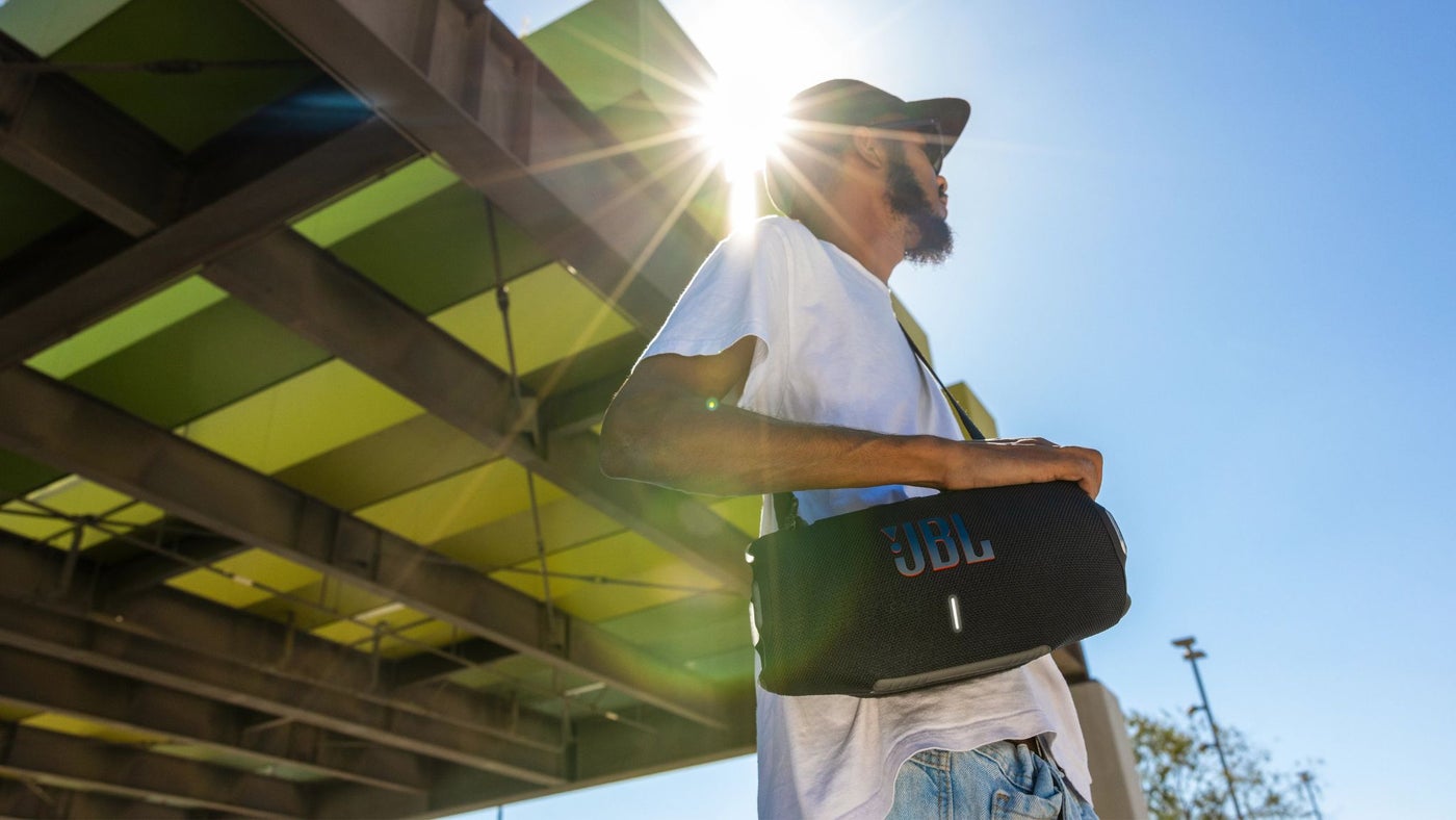 The JBL Xtreme 4’s built-in powerbank let you charge your devices without taking a break from the music.