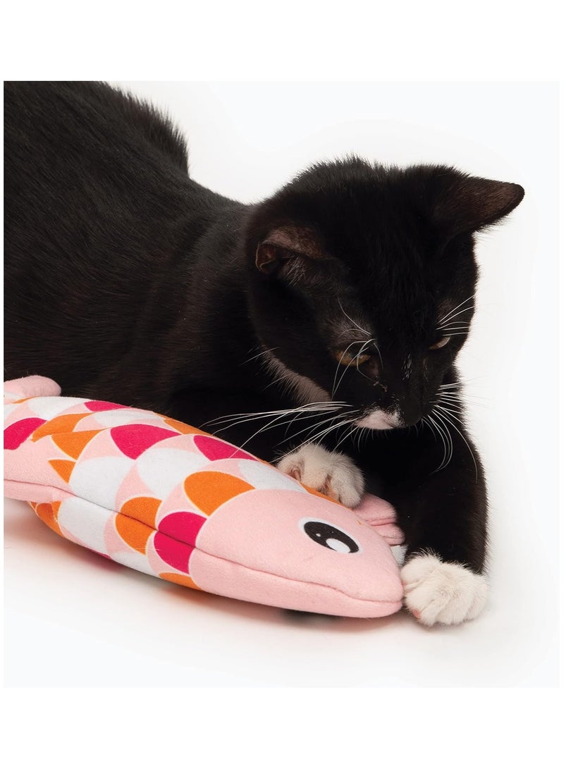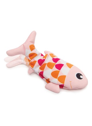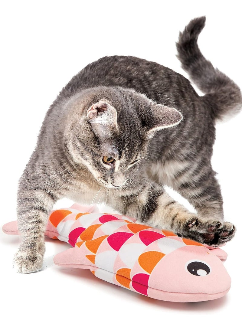 Catit Groovy Fish grooves and moves! This cute and cuddly fish toy will entertain your cat for hours with its realistic flapping motion. The fish has 3 different movement modes to stimulate your cat’s natural hunting instincts even more. The Catit Groovy Fish contains a highly sensitive motion sensor, which is activated by your cat’s touch. When playtime is over, the toy will automatically enter standby mode to save power. The toy also comes with two catnip bags. Our exclusive catnip and silvervine mixture is extremely potent and will appeal to more cats. The catnip bag can easily be replaced once its effects have worn off. The Catit Groovy Fish has an attractive graphic pattern that makes it stand out from all other toys in the market. Its trademark innocent, wide eyes, and friendly smile make this fish your cat’s best friend for snuggles, as well as their fiercest opponent during playtime. No more dead batteries to throw out after use – the toy comes with a USB cable for quick and easy charging. The Groovy Fish has a larger battery capacity than similar products on the market, with 250 movement cycles per charge! The toy has a soft, padded sleeve made of cat-safe materials that can be removed simply by opening the hook-and-loop tape on the belly of the fish. The sleeve itself can be hand-washed at 30°C / 86°F. In addition, the motor is covered by an extra-durable casing that helps absorb impacts, effectively extending the toy’s lifetime.