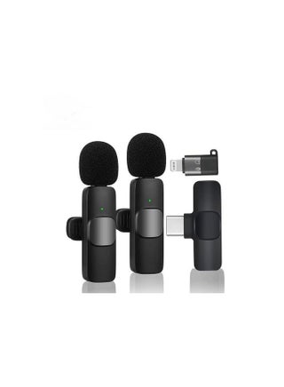 K9 Wireless Microphone Dual wireless microphone for iPhone and Type-C Devices kits contain two Transmitters and one Receiver, allowing recording 2 parties of a sound source at the same time. Plug and play are easy to set it up, and microphones and receivers will pair automatically. (You can also use one mic and receiver set). Lavalier Transmitter/Receiver Wireless Microphone with the Lightning interface can work with iPhone 6/7, 7 Plus, 8, 8 Plus, X, XR, XS, XS Max, 11, 11 Pro, 11 Pro Max.12/12 Pro, and iPad 2/3/4, iPad Air series, iPad Pro series Lavalier Transmitter/Receiver Wireless Microphone with USB-C interface can work with Samsung Galaxy S21/ S20/ S10+/ S10e/ S10/ S9/ Note 20 Ultra/ 20/ 10+/ 9, Google pixel 3/ 4/ 5/ 6, Moto G Power/ G Stylus/ G9/ G8/ G7/ E/ Z, LG V50/ V40/ G8/ G7, Xiaomi and more USB Type-C Devices with OTG function. Light Weight The Lapel mic weighs only 0.25oz(7.4g) and the receiver only 0.14oz(4.4g), with a mini Clip that allows you to easily clip it to your collar.Prefect for YouTube/Facebook Live Stream, TikTok, and other video recordings. Long Battery Life The wireless lavalier microphone can provide up to 6 hours of continuous use after being fully charged. You don’t have to worry about running out of power during recording. 360° Omnidirectional Recording Built-in DSP IC chip and anti-spray sound sponge. The 360° comprehensive microphone can capture the clear sound around for iphone microphone for video recording to help you finally create good recording. PACKAGE INCLUDE: 2xMicrophone transmitter 1x from type c to (Lightning interface) 1xReceiver (USB-C interface) 2xExtra rotating clip