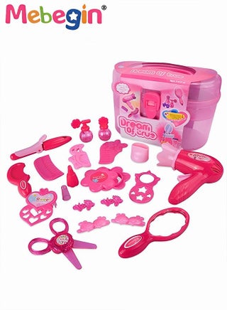 تتضمن مجموعة ألعاب صالون الحلاقة هذه 25 قطعة من ألعاب حلاقة الأطفال، بما في ذلك المرآة والفرشاة وماكينة قص الشعر وشفرة الحلاقة الدوارة وماكينة الحلاقة اليدوية ومجفف الشعر والمشط *2 والمقص *2 والمال للعب وغيرها من ملحقات تصفيف صالون الأولاد لطفلك.