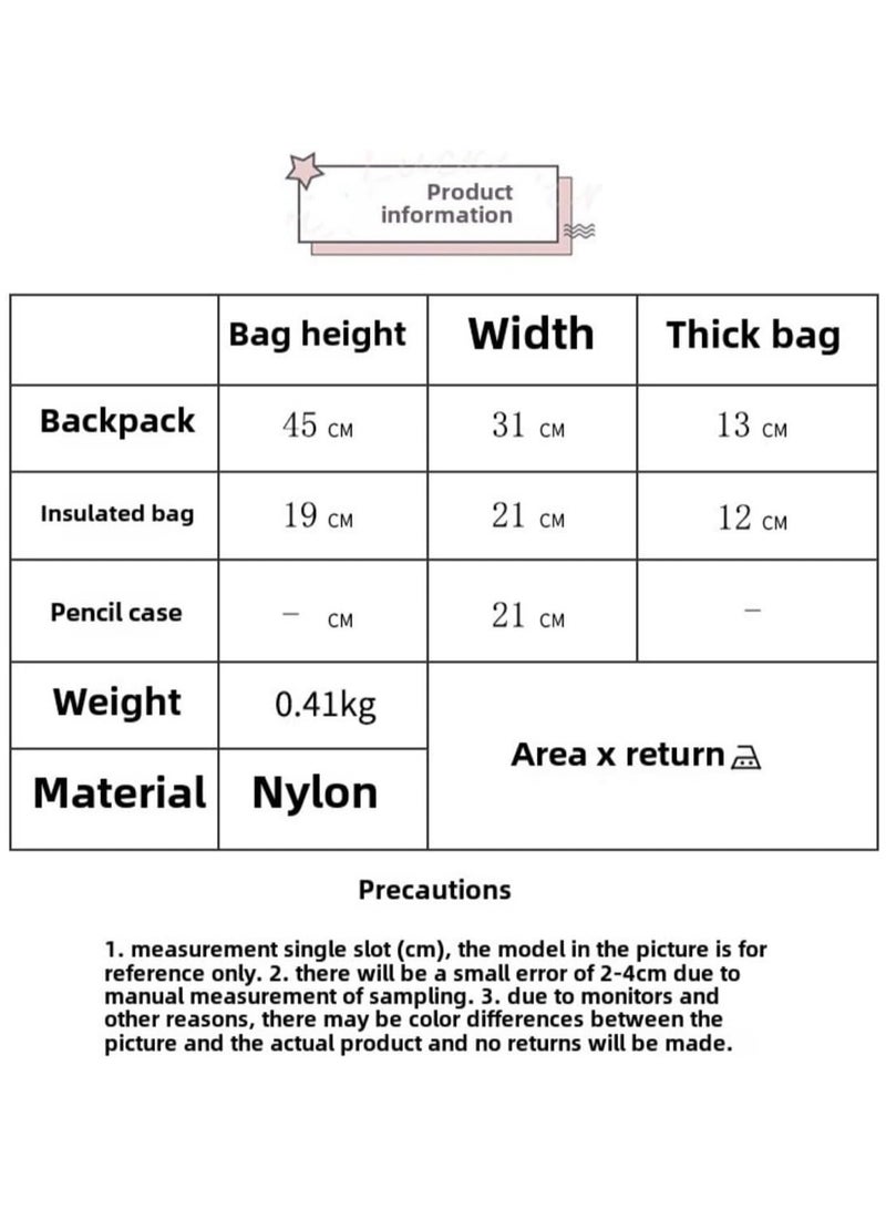 【حقيبة ظهر متينة ومقاومة للماء للفتيات】حقيبة الكتب هذه مصنوعة من بوليستر عالي الجودة، مقاوم للماء، سهل التنظيف ولا يبهت لونه، مما يمنح طفلتكِ تجربة ممتعة. جميع طبقاتها معززة لضمان مقاومة الحقيبة للتمزق. نستخدم سحابات SBS برأس سحاب طويل وناعم، مما يحل مشكلة التصاق السحابات.