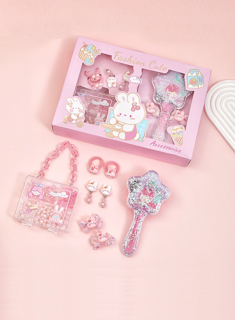 إكسسوارات شعر للأطفال - مجموعة إكسسوارات شعر بنات لتزيين الشعر في الحفلات والأعياد، تشمل مشابك شعر كرتونية، أربطة شعر، أساور وخواتم DIY، مشط جميل وأقراط، كلها معبأة في صندوق هدايا فاخر - هدايا رمضان للأطفال المثالية.