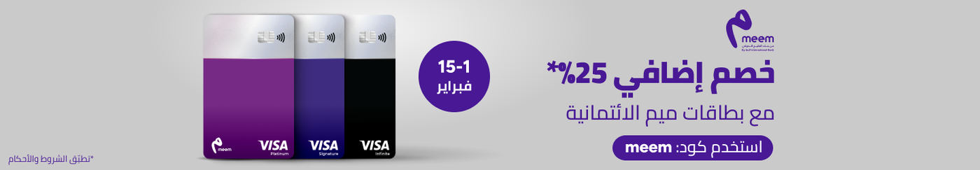 سيتم تطبيق الخصم تلقائيًا عند إتمام الدفع باستخدام بطاقة ميم الائتمانية الصادرة في السعودية وإدخال كود الخصم: meem.