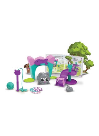 تعرف على كودينج سريتيرز أول أصدقائك في البرمجة! تجلب هذه الحيوانات الأليفة المرحة والمبهجة مفاهيم جذعية مبكرة للتعلم في مرحلة ما قبل المدرسة من خلال كود الترميز الخالي من الشاشة للأطفال بنسبة 100% إلى جانب مغامراتهم الجديدة في كتاب القصص الحيوانات الأليفة، وساعد سكامبر الفضول وسنيكر المخادع على الحصول على وقت اللعب لا ينسى أبداً! كل تحدي في ترميز كتاب القصص يتكشف في مجموعة ألعاب الحيوانات الأليفة المرحة كودينج سريتيرز- هل يمكنك برمجة سكامبر للعب الغميضة والبحث عن الفراشة في نهاية لعبة قطتها أو اصطياد السنيكرز بعد ركوبه الزلاقة؟ بالإضافة إلى متابعة تحديات الترميز الخاصة بكتاب القصص، يمكنك أيضاً استخدام مجموعة ألعاب الحيوانات الأليفة لتصميم ألعاب الكود الخاصة بك والمزيد! كما تتضاعف كودينج سريتيرز كحيوانات أليفة تفاعلية لطيفة - اضغط على أنف سكامبر لتنشيط وضع اللعب حيث يمكنك إطعام الحيوان الأليف والعناية بالقطتك الروبوت الرفيقة الجديدة! يمكنك أيضاً جعل القطة ترقص وتغني أغنية سخيفة!