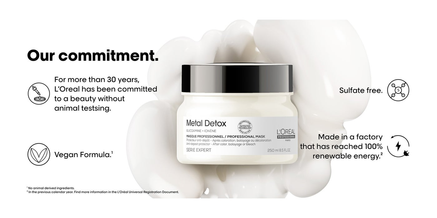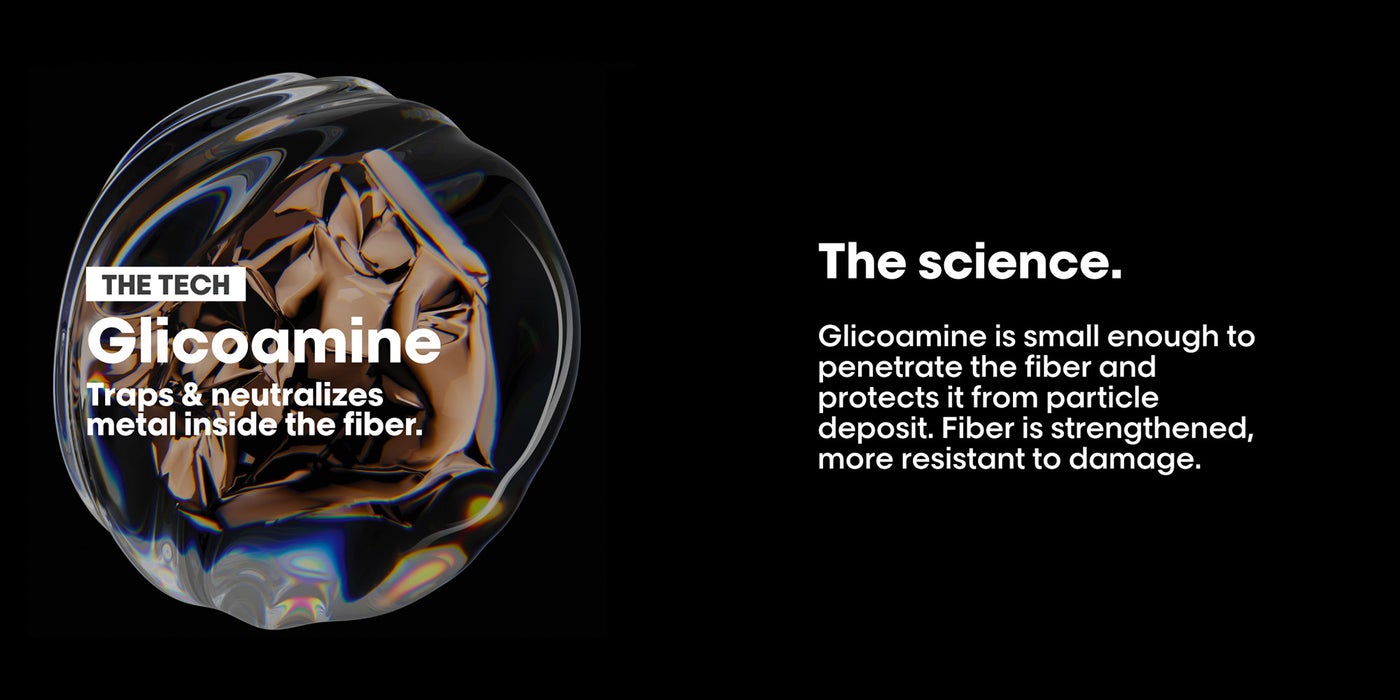 مُركّزة بالجليكوامين، جزيء صغير بما يكفي لتتبع وتحييد المعادن داخل الألياف. ماسك واقي للشعر الملون والتالف لحماية الألياف من ترسب الجسيمات.