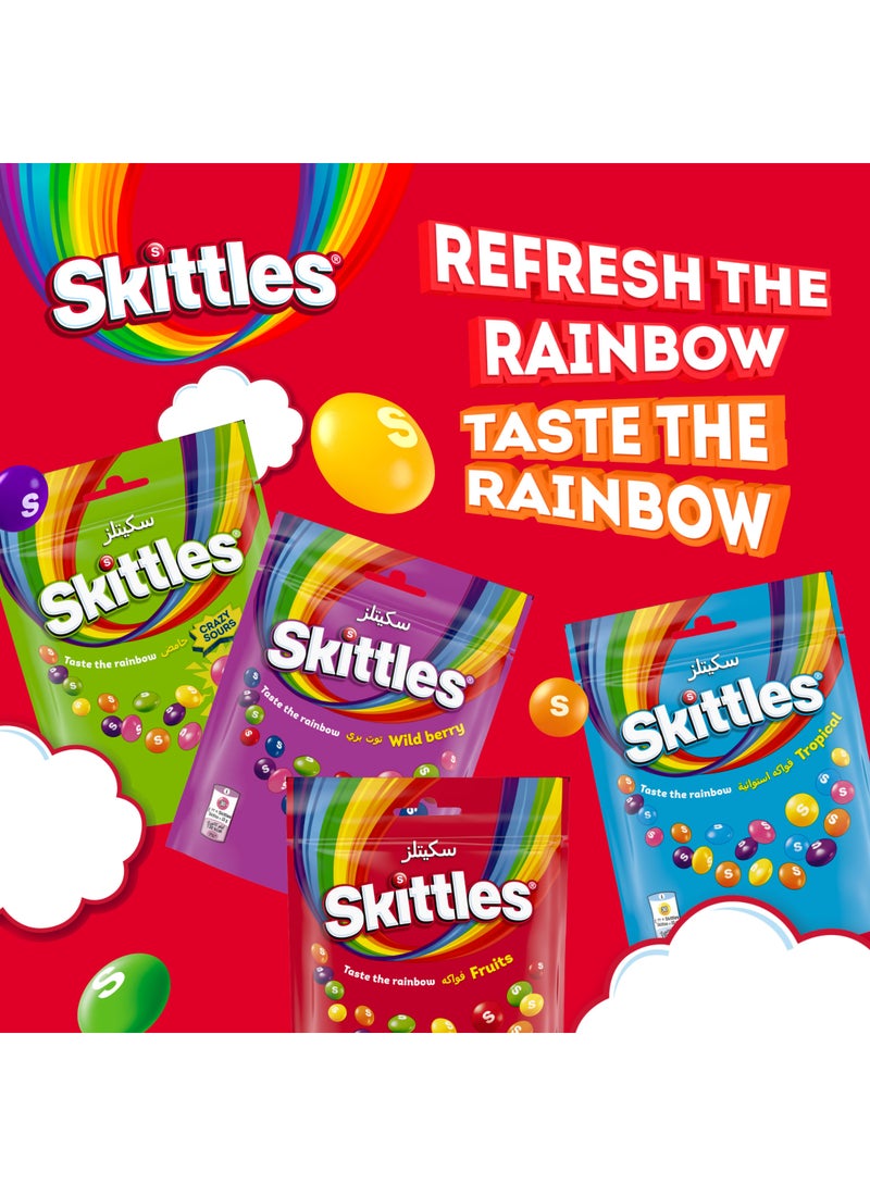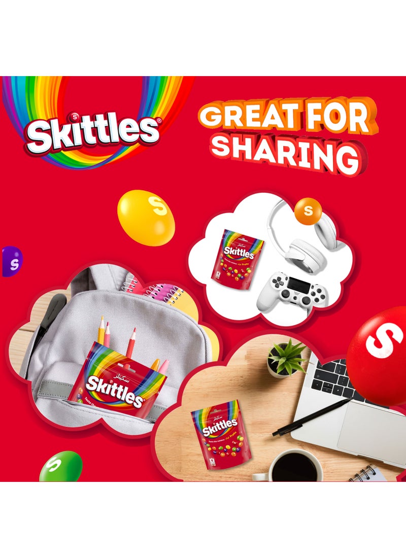 استمتع بقطع حلوى سكيتلز المطاطية المغطاة بطبقة من نكهة الفواكه عند مشاهدتك لفلم أو أثناء اللعب. تعد قطع الحلوى المطاطية هذه مثالية للمشاركة.