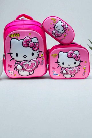🎀🐱 أضيفي لمسة من الأناقة والمرح إلى يوم طفلتك مع طقم شنط هيلو كيتي البناتي المكون من 3 قطع متكاملة. يتميز الطقم بتصميم أنثوي راقٍ يجمع بين الرسومات الكرتونية المحببة والألوان الزاهية الجذابة، مما يمنح الطفلة إطلالة مبهجة ومميزة في المدرسة أو أثناء الرحلات