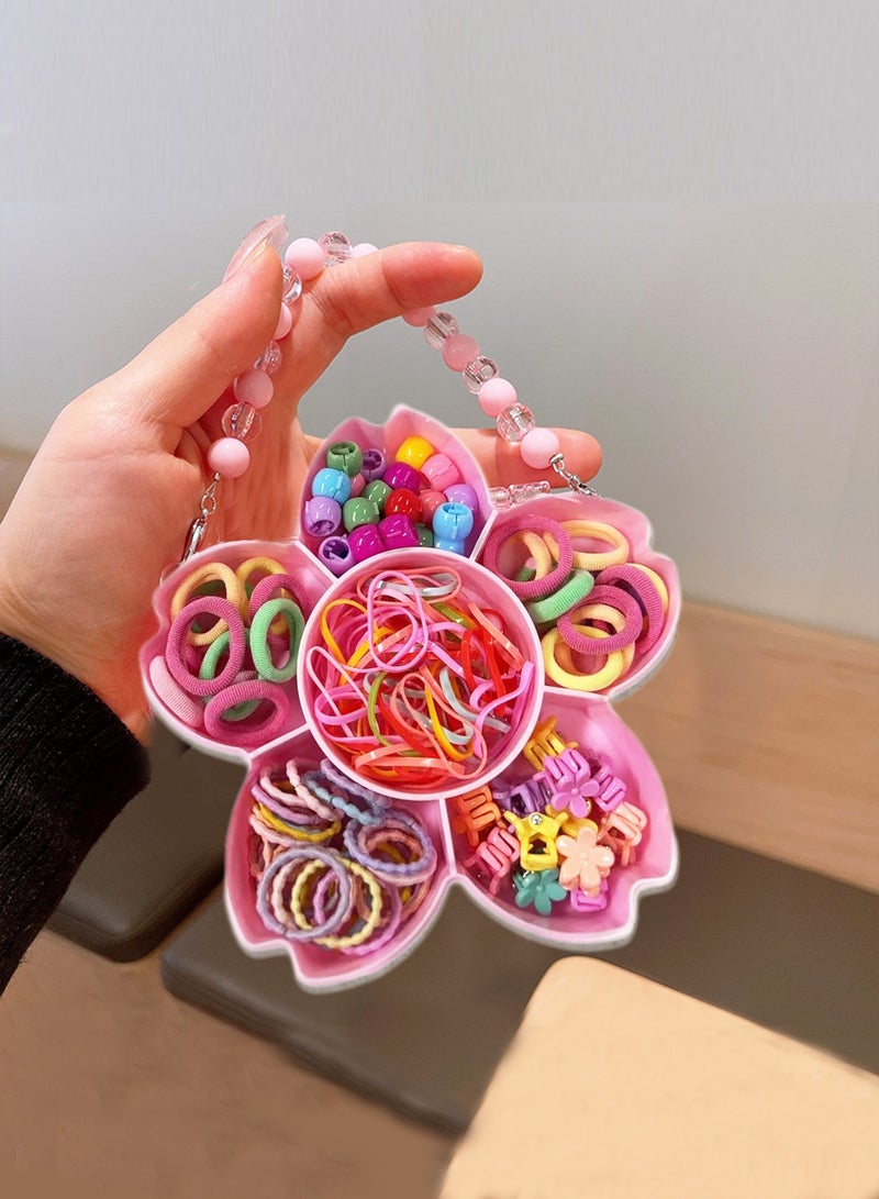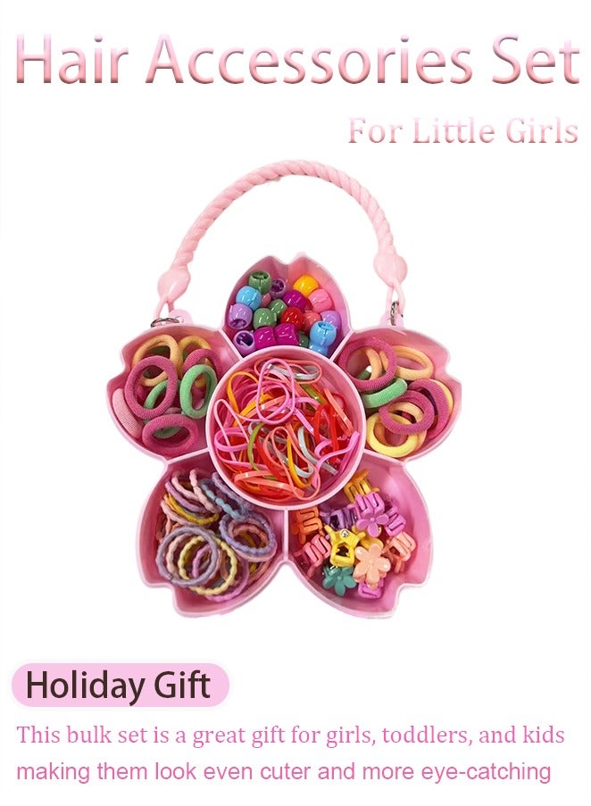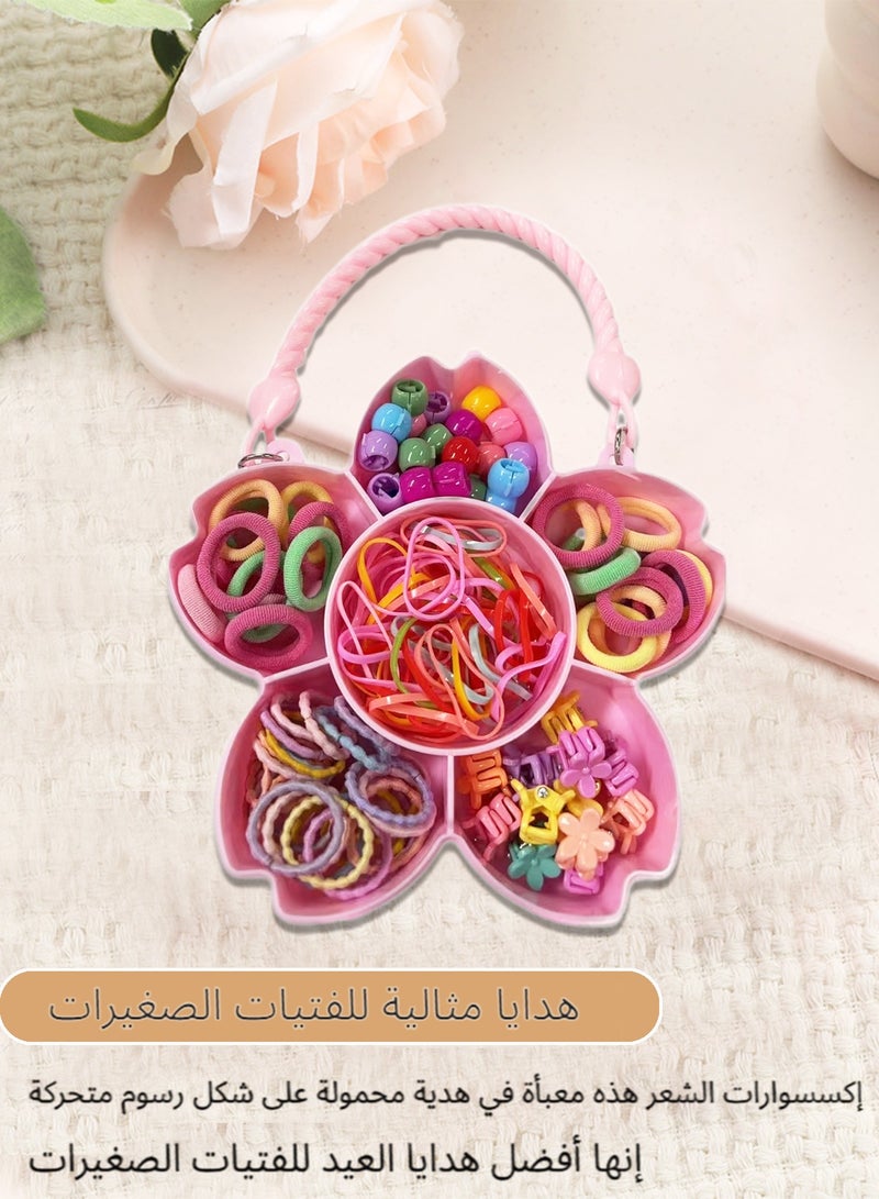 إكسسوارات شعر للأطفال - مجموعة إكسسوارات شعر بنات مع صندوق هدايا وردي على شكل زهرة الكرز: مشابك شعر ملونة، أربطة شعر متنوعة، وخصلات شعر صناعية - هدايا رمضان للأطفال مثالية للبنات الصغيرات (مناسبة للأعمار من 3-12 سنة)