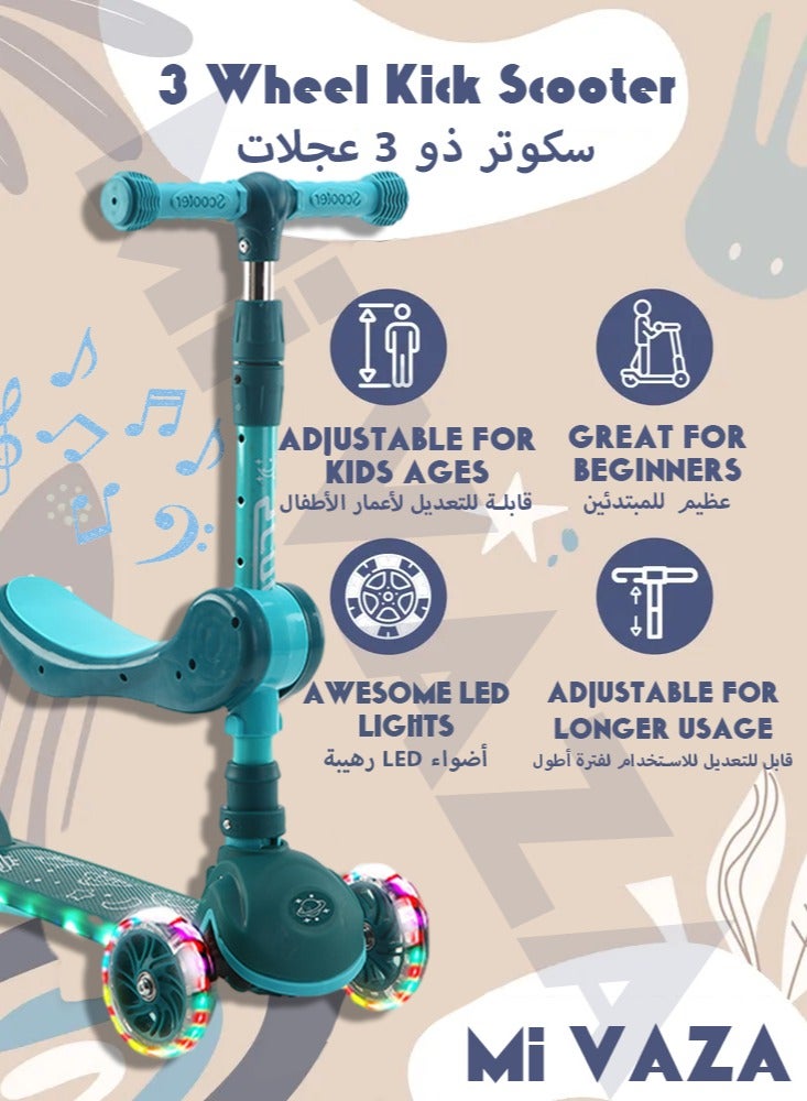 MULTI-COLOR WHEEL LIGHTS: Our 3-Wheel Kick Scooters for Kids feature colorful LED turning wheel lights that light up in a variety of flashing colors as you scoot,adding a fun twist to the ride!It also makes the scooter stand out