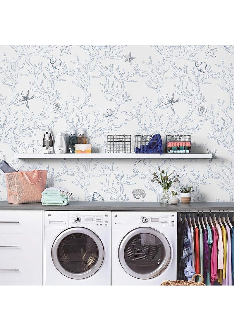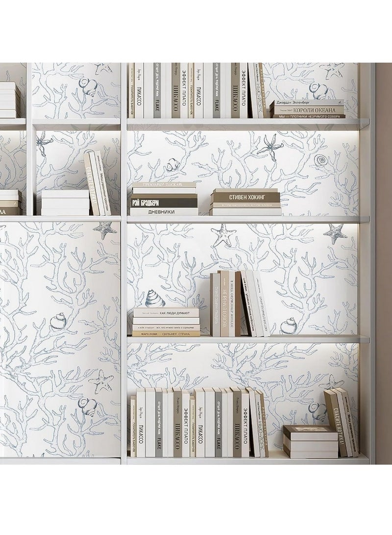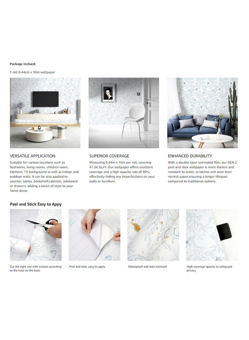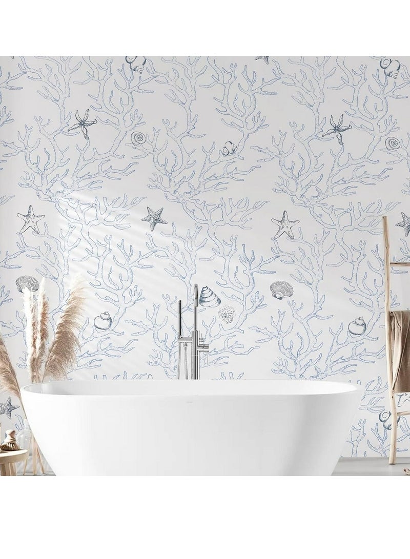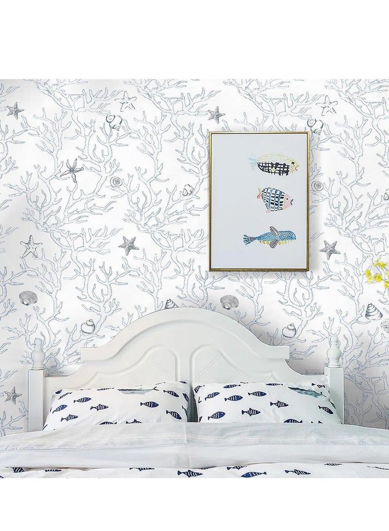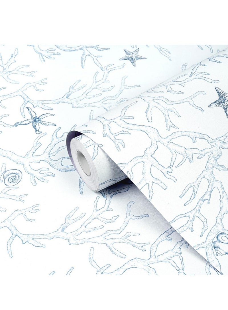 ورق حائط شعاب البحر الزرقاء الفاتحة: طبقة مزدوجة مطلية، ملمس سميك، تغطية عالية وغير شفاف، 11 ياردة (47 قدم مربع)، ورق حائط ذاتي اللصق قابل للإزالة واللصق.