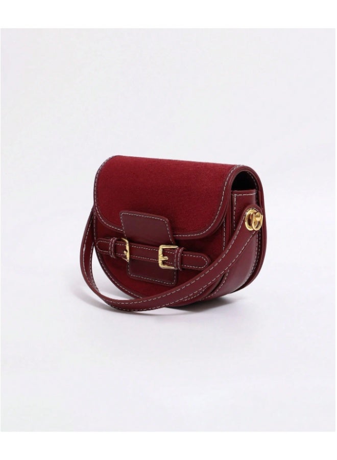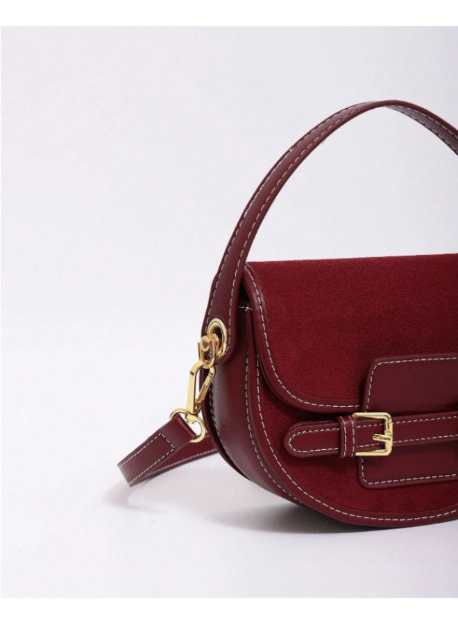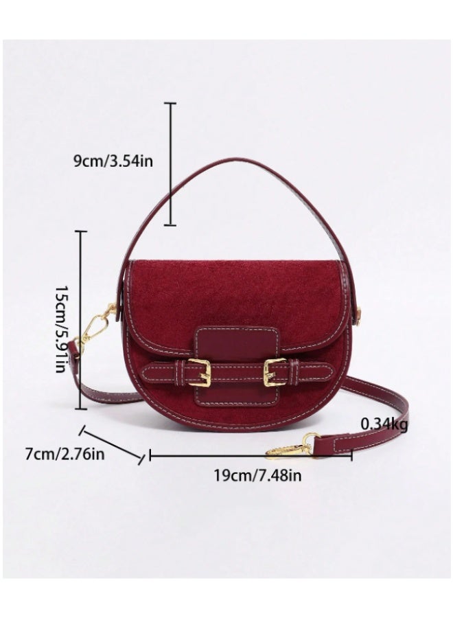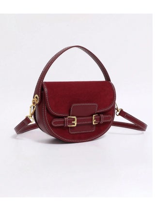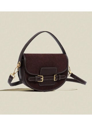 اكتشفي روعة التصميم الكلاسيكي مع لمسة عصرية فاخرة. هذه الحقيبة بتصميم السرج المميز مصنوعة بالكامل من مادة ذات ملمس الشمواه الناعم والغني، مما يمنحها مظهراً دافئاً وجاذبية لا تُضاهى.
