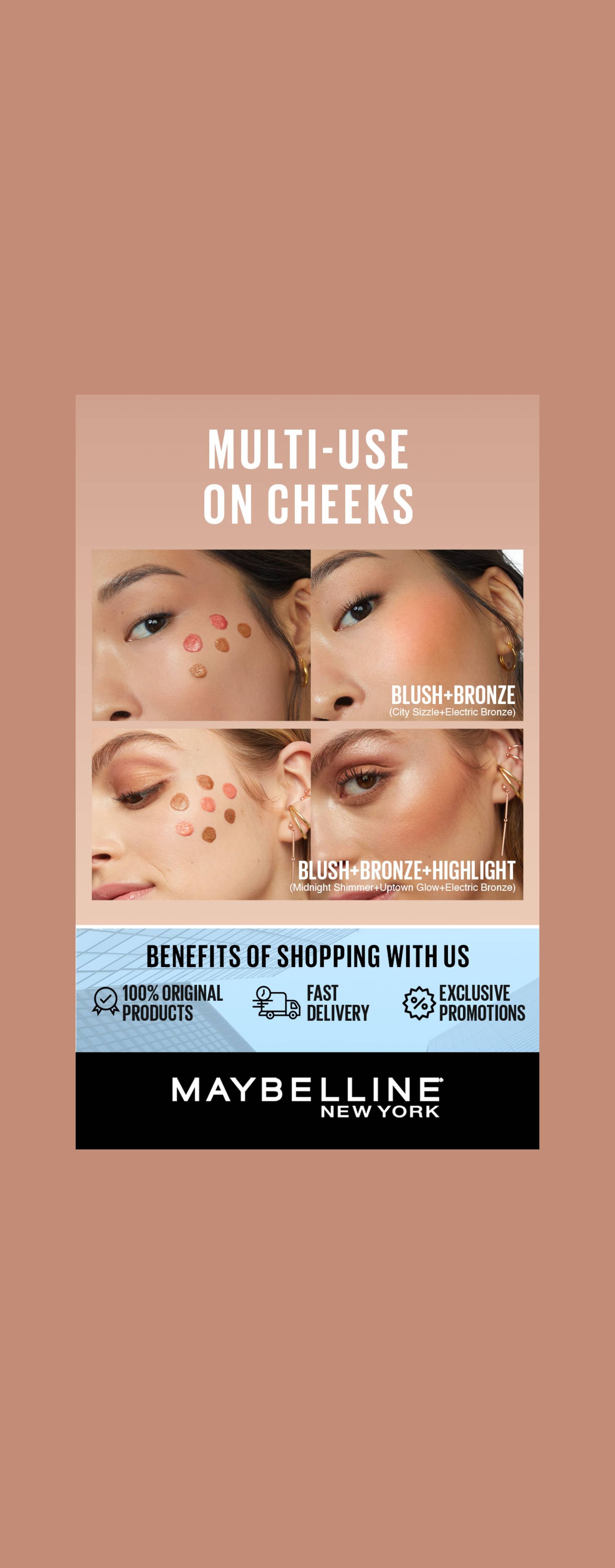 كل يوم صيف مع سن كيسر من ميبيلين نيويورك! عايزة إطلالة صيفية مشرقة طول السنة؟ بلاش سن كيسر السائل هو الحل! تركيبته خفيفة وفيها فيتامين E، بتدوب على البشرة وبتديها لون طبيعي يدوم طول اليوم. سهلة الاستخدام، حطي 3 نقط بسيطة وامزجيها كويس، و هتتحكمي في درجة اللون اللي تناسبك. متوفرة ب 9 درجات لكل أنواع البشرة. جربي سن كيسر، هتحسي إنك لسة راجعة من الاجازة! وكمان تركيبة نباتية!