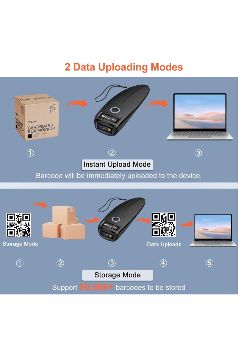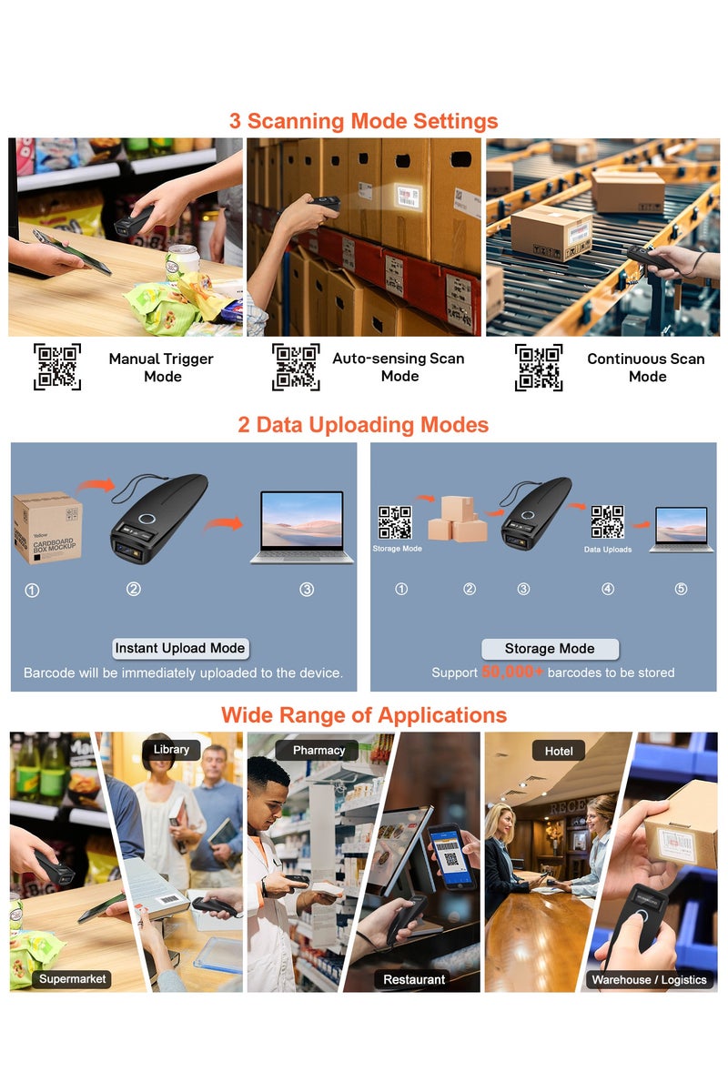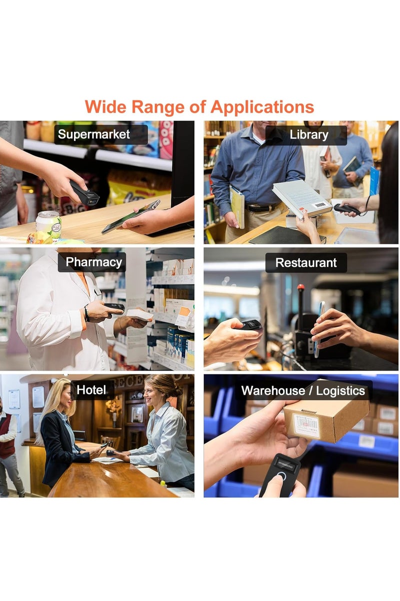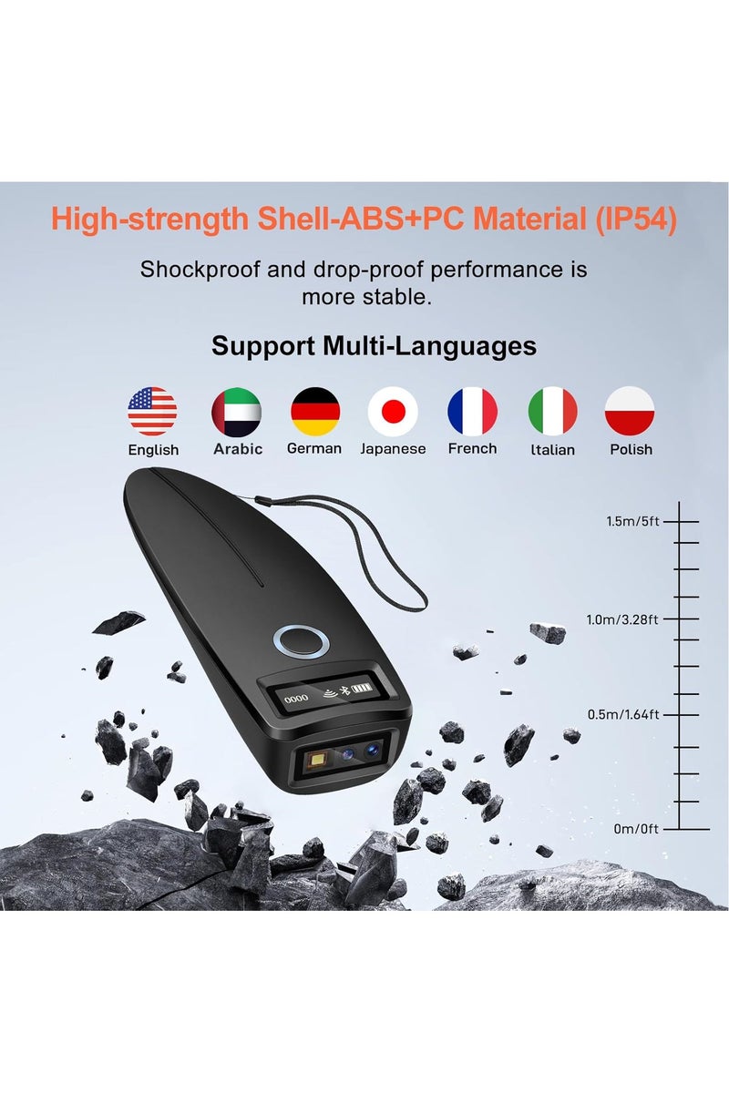 Durable & Shockproof & Drop-proof: W7 Mini Barcode Scanners have IP54 dust and waterproof rating, High-strength Shell-ABS+PC Material allows the barcode scanner sustain up to 1.5m/5ft drops from ground, Shockproof and drop-proof performance is more stable.